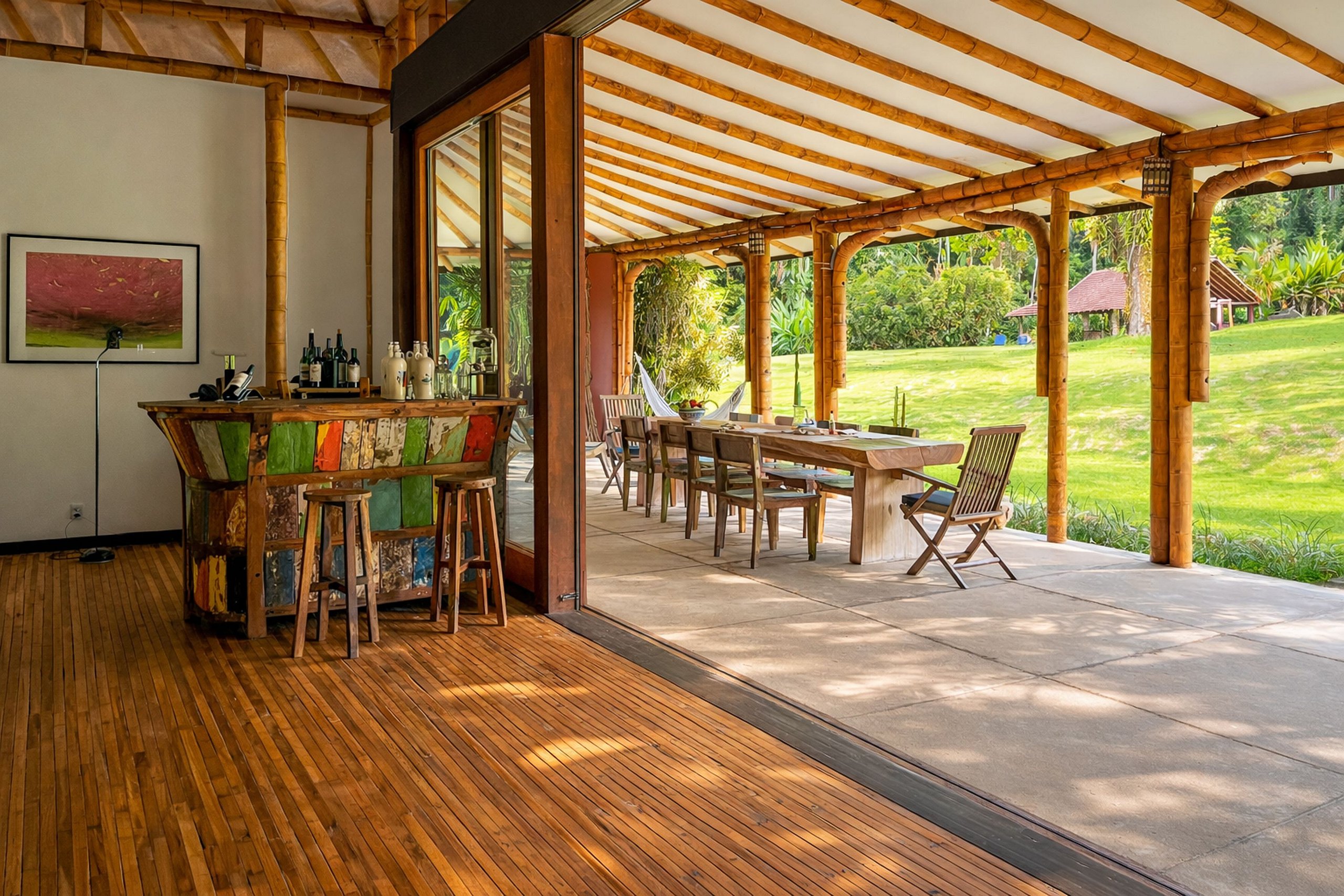 Conceived as a true tropical retreat, the residence stands out for its organic and elegant architecture, featuring bamboo and natural materials that create a serene, light-filled and effortlessly sophisticated atmosphere. Open-plan living spaces flow seamlessly into the surrounding gardens, offering a constant connection to nature.