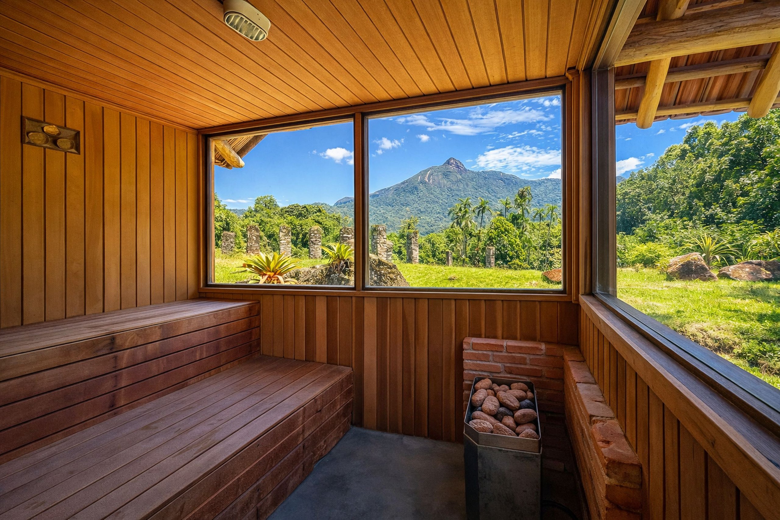 Outdoors, the estate reveals truly unique amenities: a natural river running through the property, forming a freshwater natural pool, a sauna hidden within the vegetation, and a charming private tennis court, considered one of the most picturesque in Brazil. Every outdoor space has been designed to encourage relaxation, wellness and meaningful shared moments.