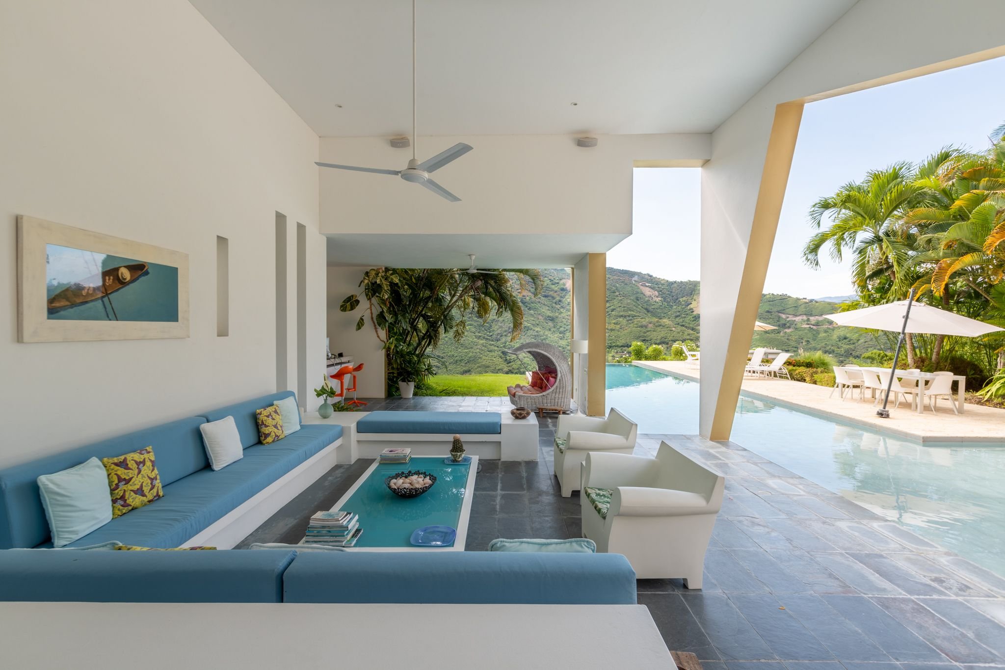 The house is located in one of the most enjoyable sectors of Mesa de Yeguas. It has a spectacular view of the mountain from the pool, where you can enjoy the wonderful sunsets in this area. The house has 4 spacious and comfortable bedrooms, with a maximum capacity of 14 guests. The living room is open and overlooks the pool and has excellent lighting at night.