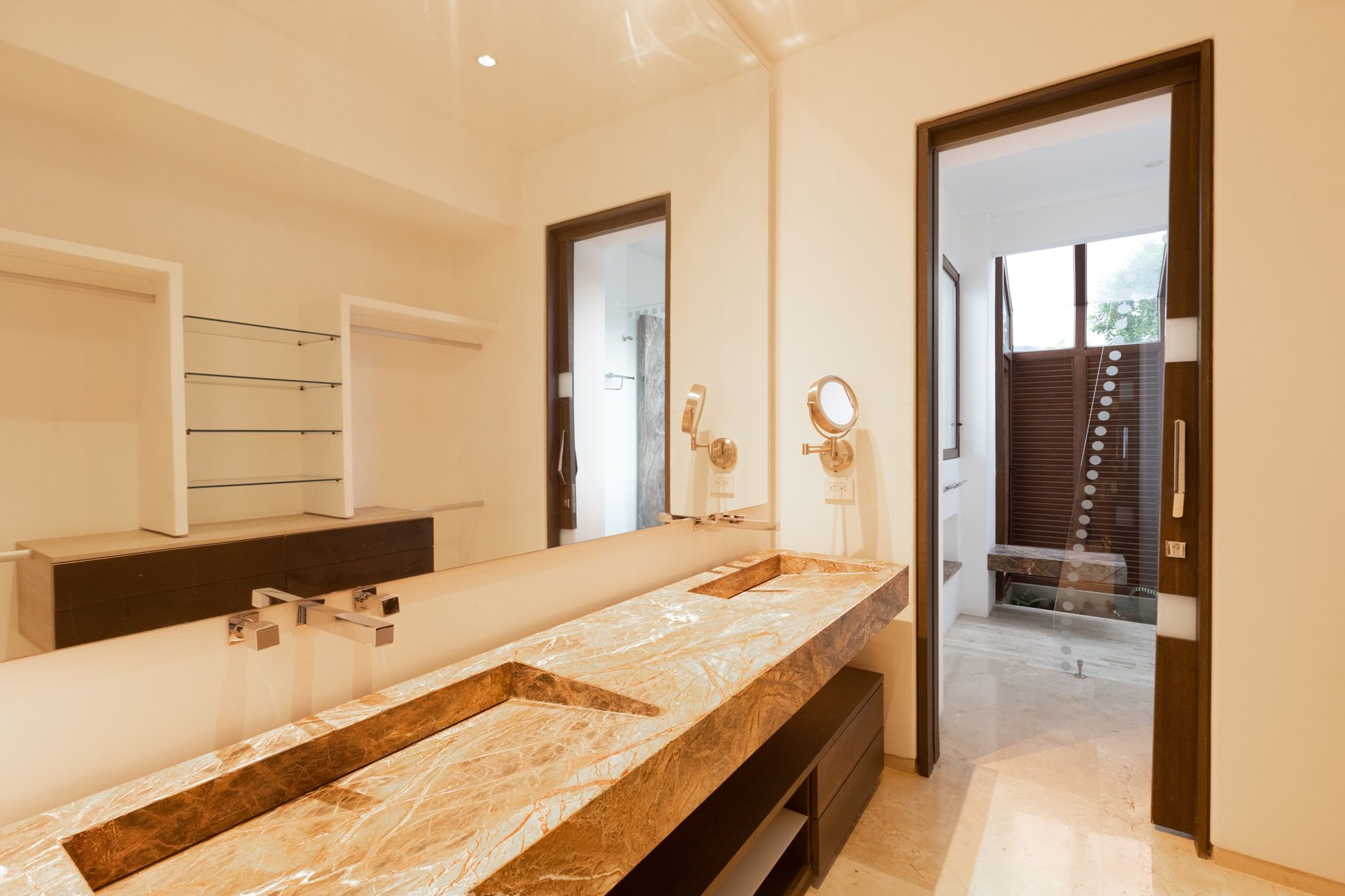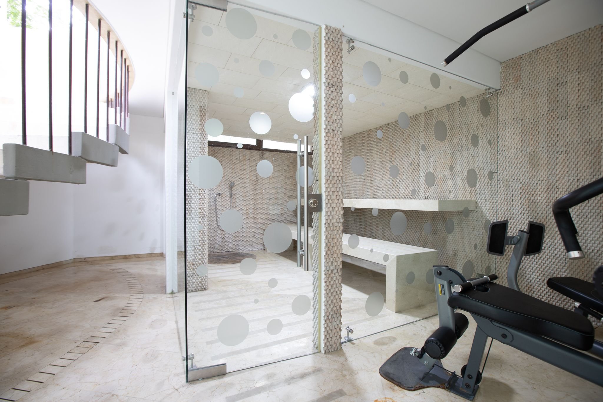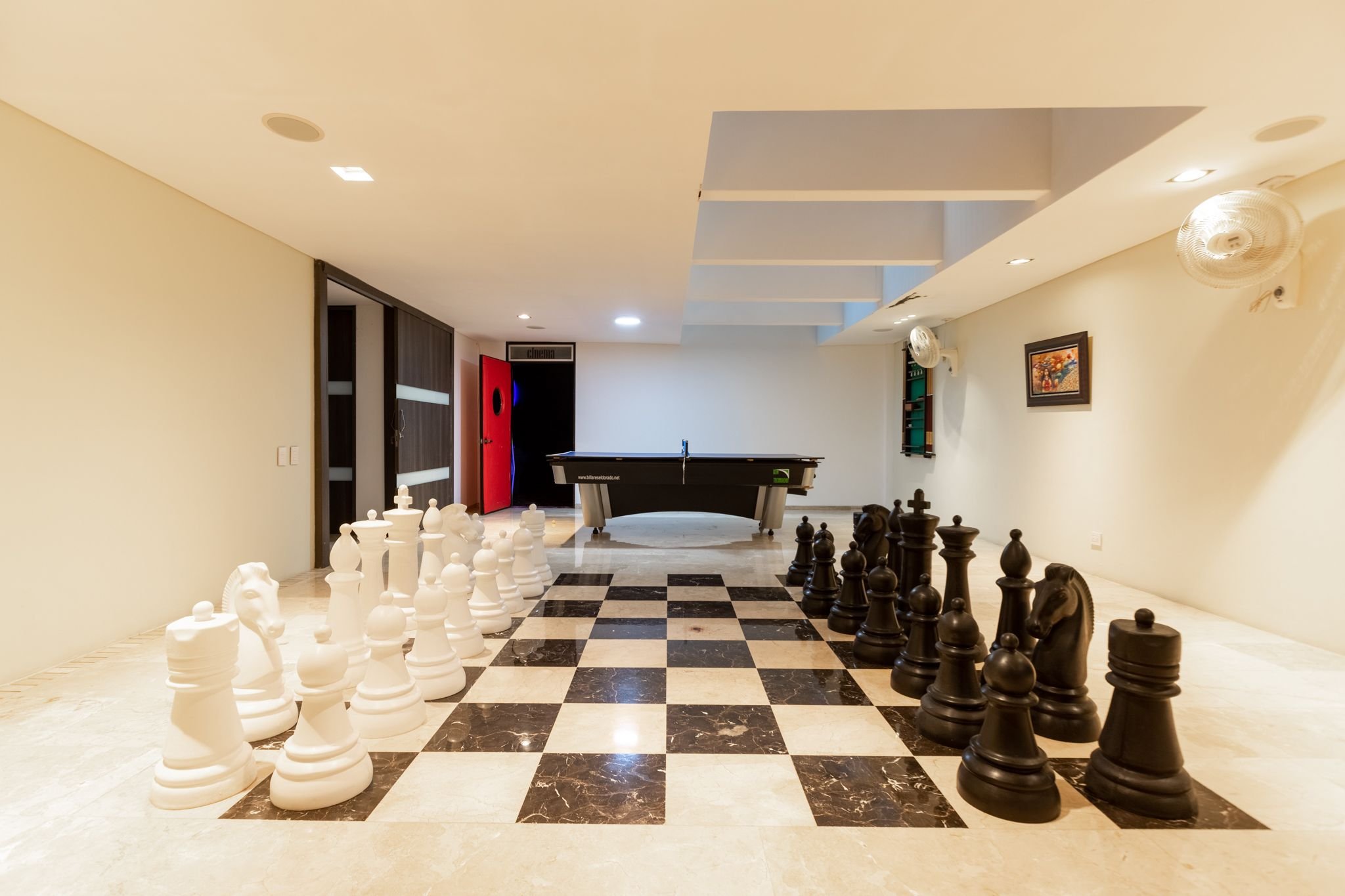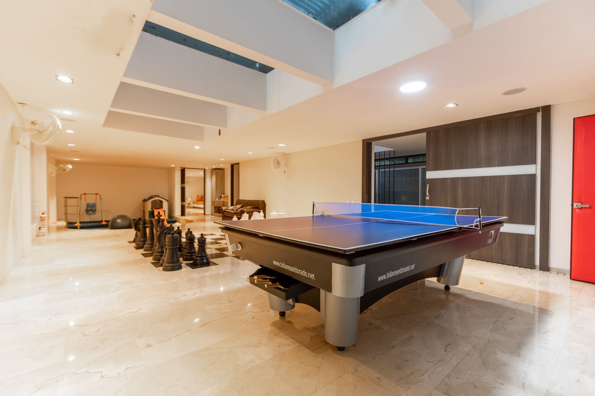 The house is spacious and it has an imposing architectural design with three levels. On the first level you will find the steam room, sauna, games room, guest room and an incredible home theater with capacity for 12 people, where you can spend a movie night with your group.