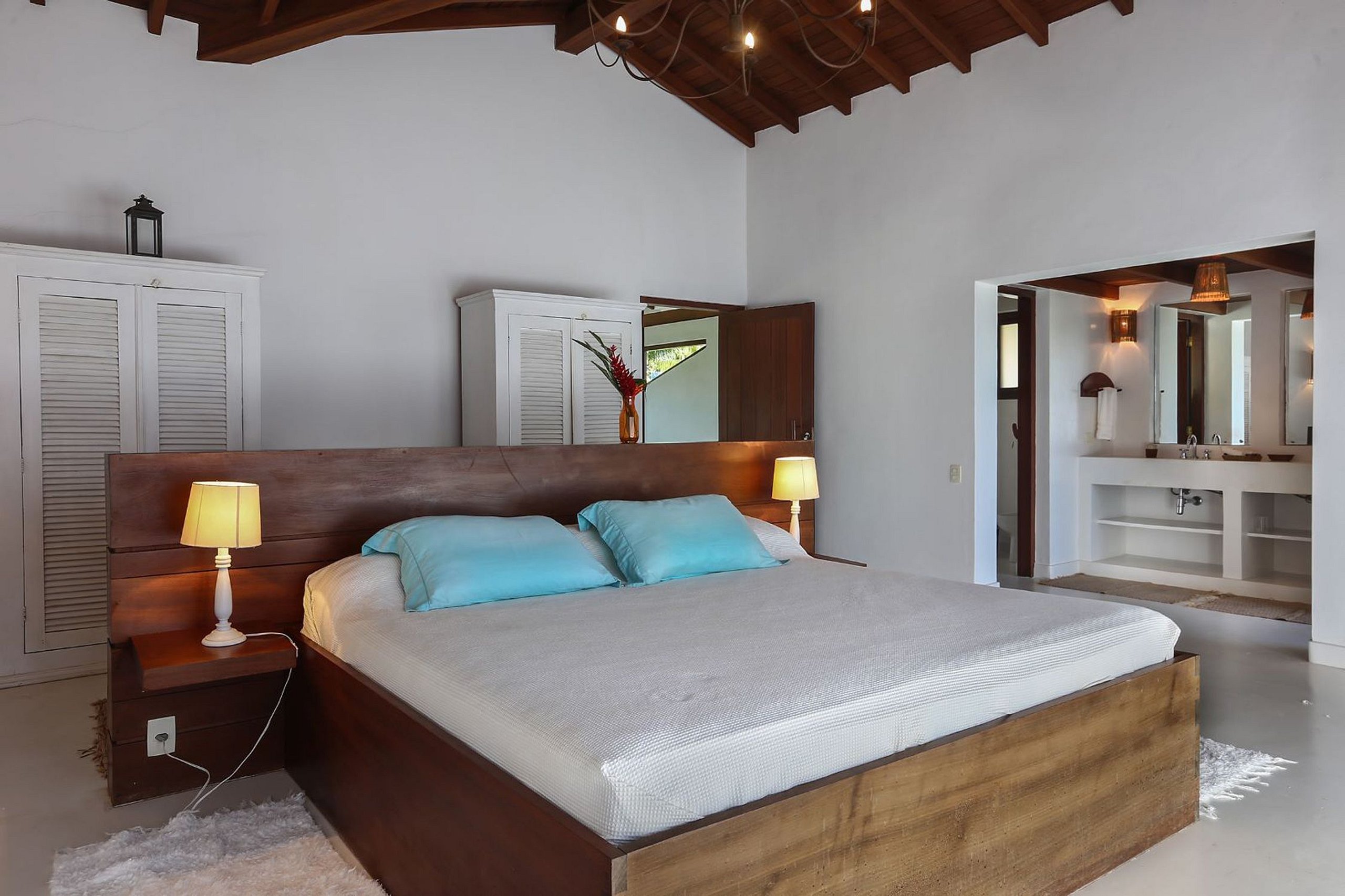 Master Suite 2: King size bed, air conditioning, balcony with garden view, swimming pool and golf course, bathroom with two showers and two sinks.