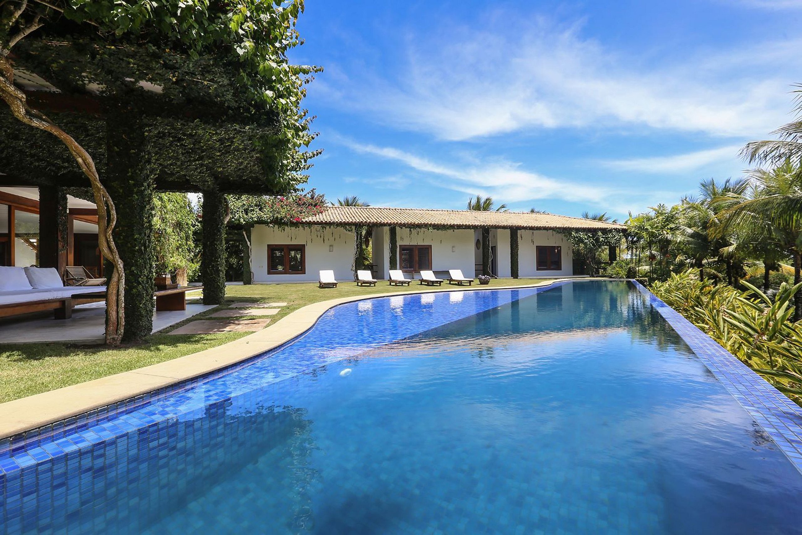 Beautiful 25m x 3m lap pool with its beautiful view on the golf course, the large pergola, the balconies and hammocks are invitations to enjoy the sunny days of Bahia.
