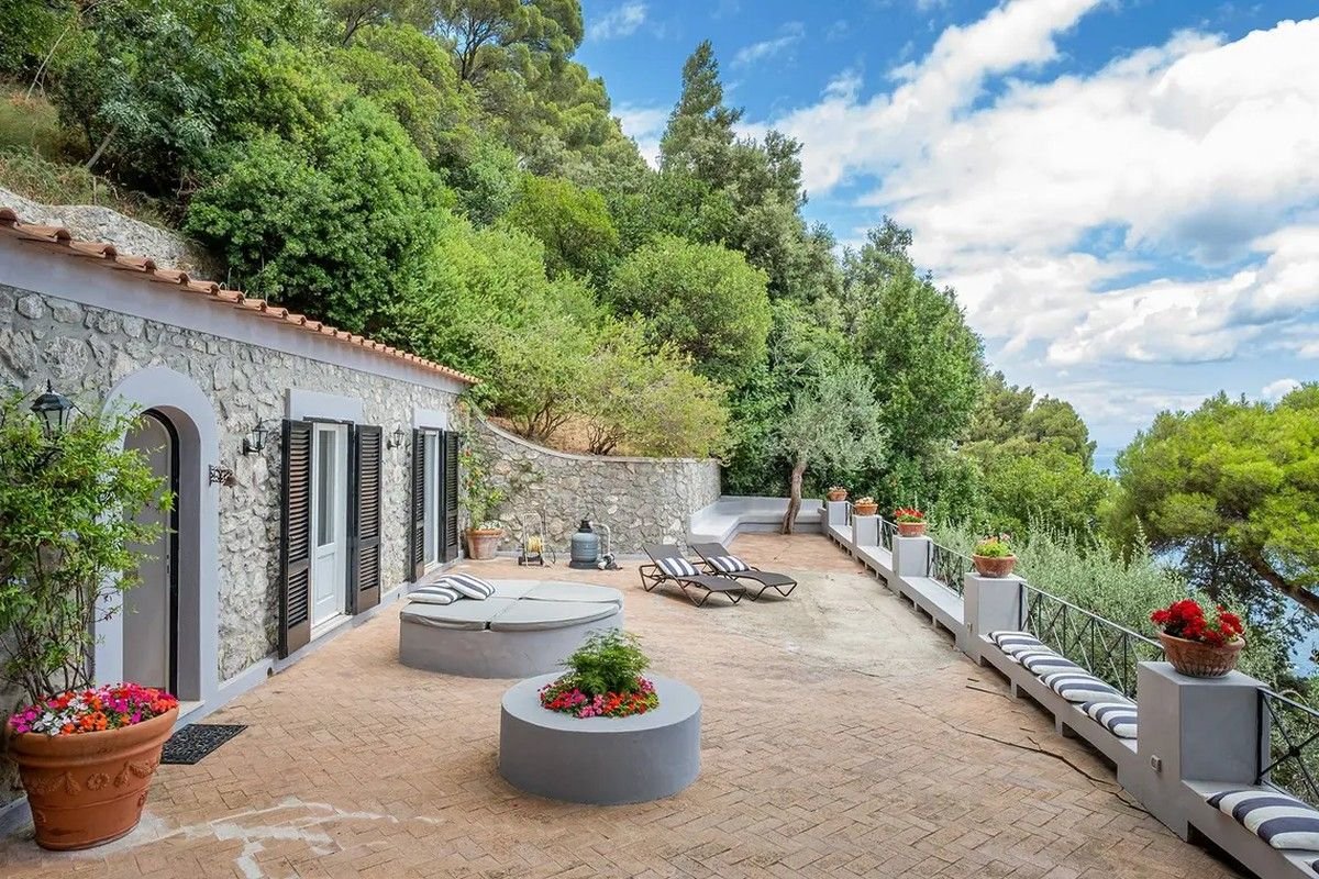 Occupying an entire section of the hillside overlooking the Gulf of Sorrento, this property offers an unparalleled panorama encompassing Vesuvius, the Bay of Naples, the Amalfi Coast, and Capri itself. While you can easily reach the property by car, there's also the option of a leisurely stroll to the heart of Capri, the iconic "Piazzetta," and it's worth noting that the property boasts its very own private funicular.