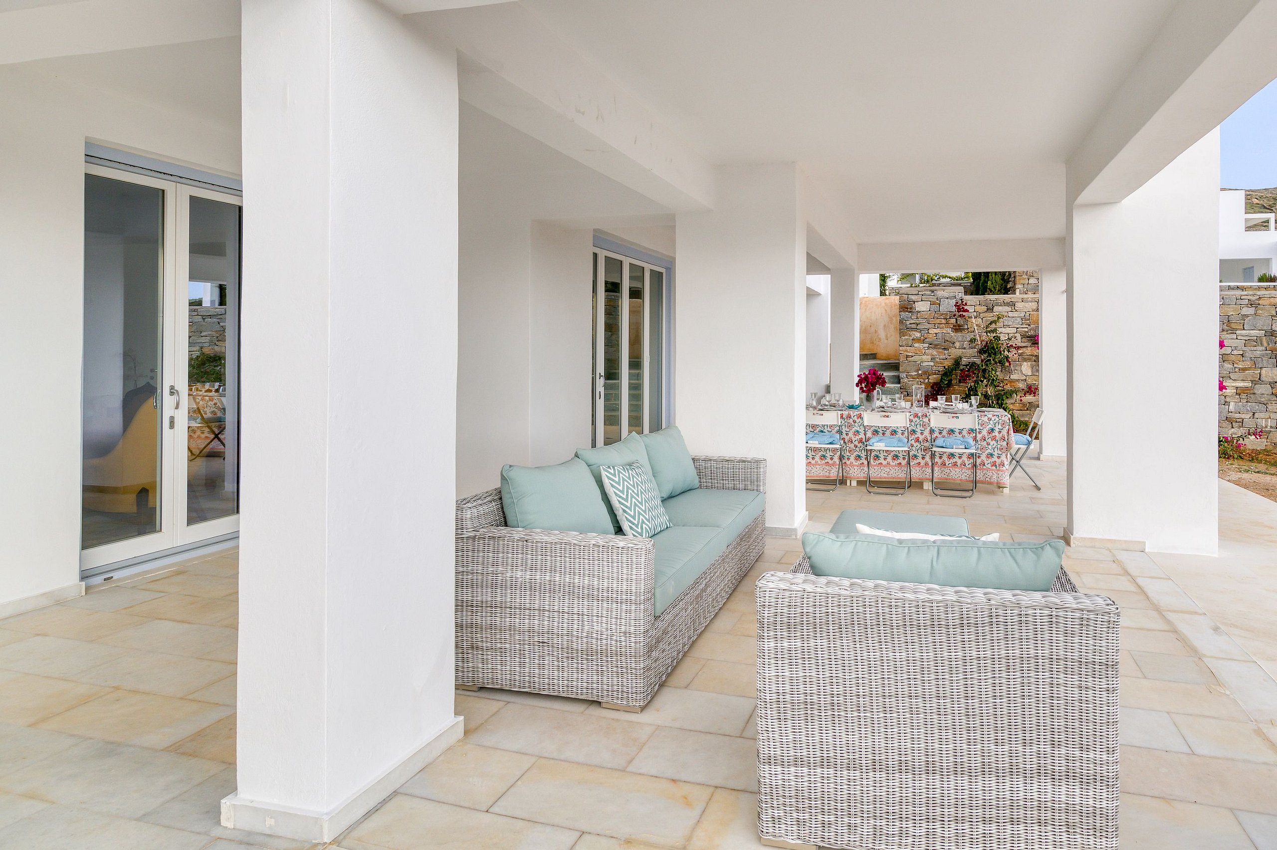 The luxurious villa in Paros is just a 10-minute walk from the closest beach of Molos.