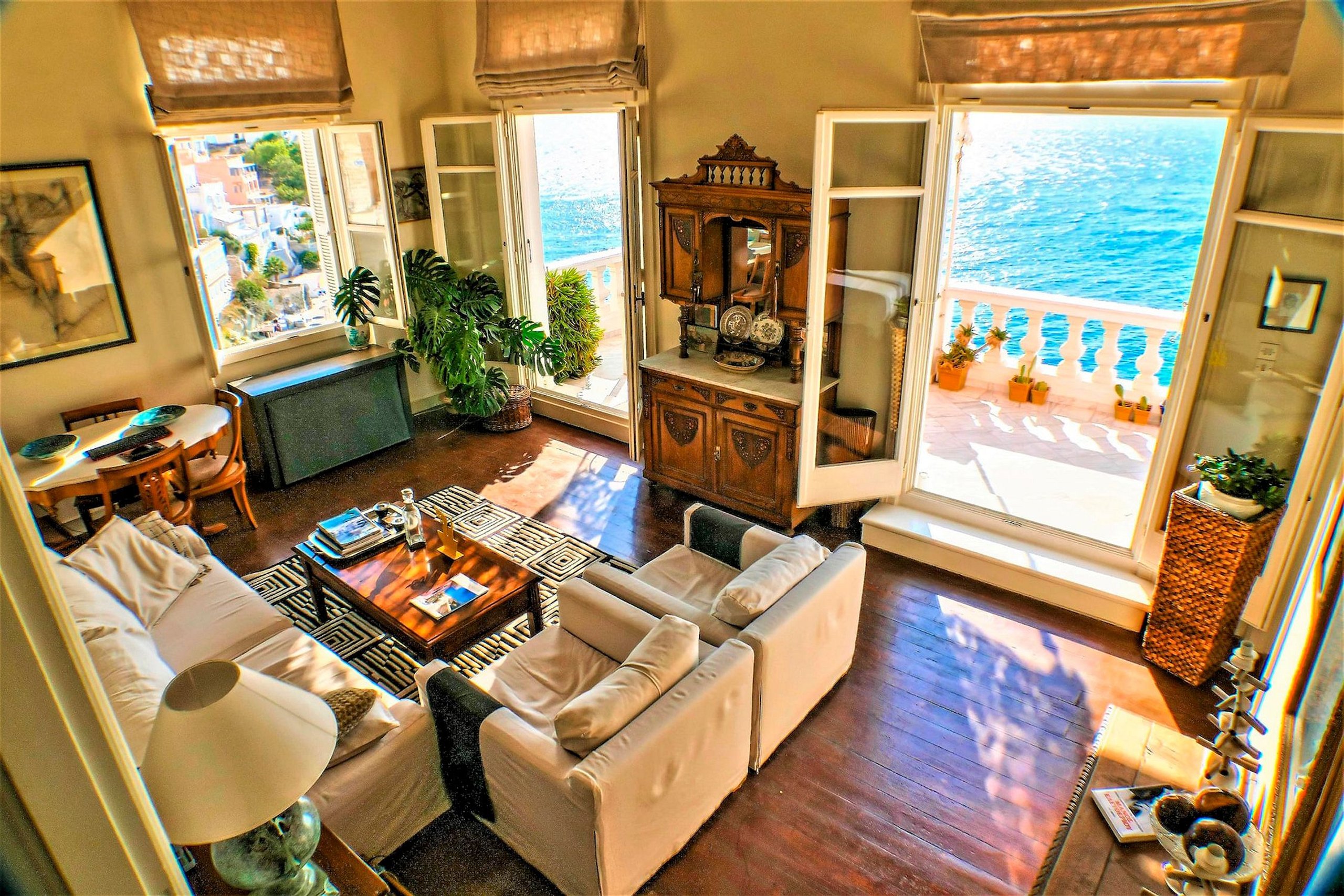 Beautiful Veranda just above the sea considered one of the most beautiful with the best views. Various movies and commercial productions have been shot in this very veranda, where you will also find a day bed and a dining table for 8.
