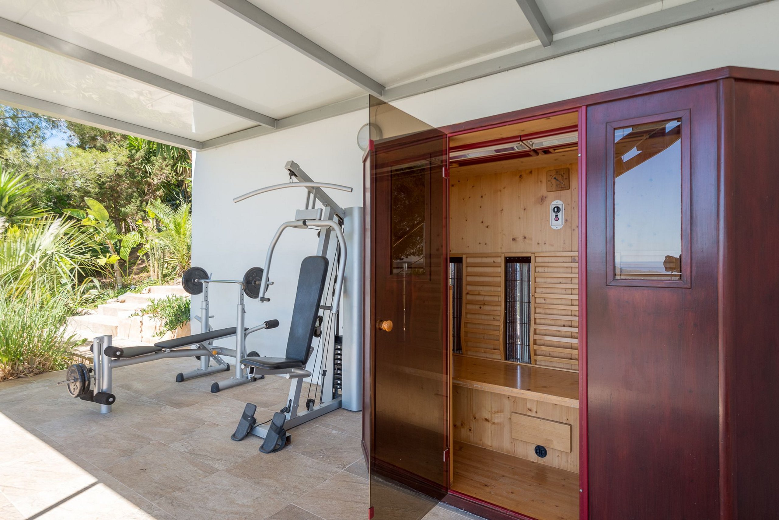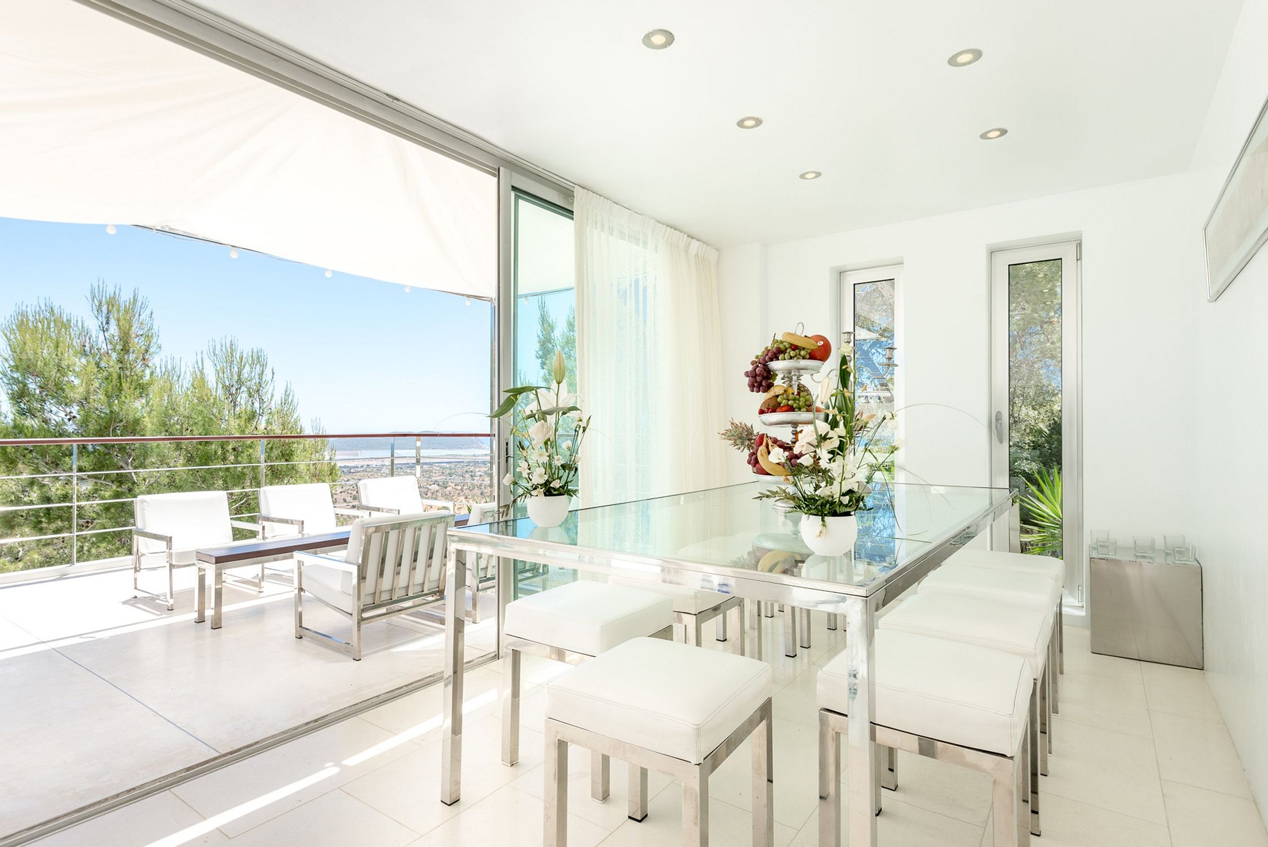 Magnificent, one-of-a-kind villa, an architectural gem, a pure white mansion emerging from the solid rock, beautifully furnished in modern minimalist chic Mediterranean designer style, 8 en-suite double bedrooms, all suites with splendid views, a peaceful, relaxing oasis located in a pine forest. Includes full-time discrete staff, butler, housekeepers, personal chef. The perfect venue for entertaining and hosting unforgettable dinners, parties, and events.