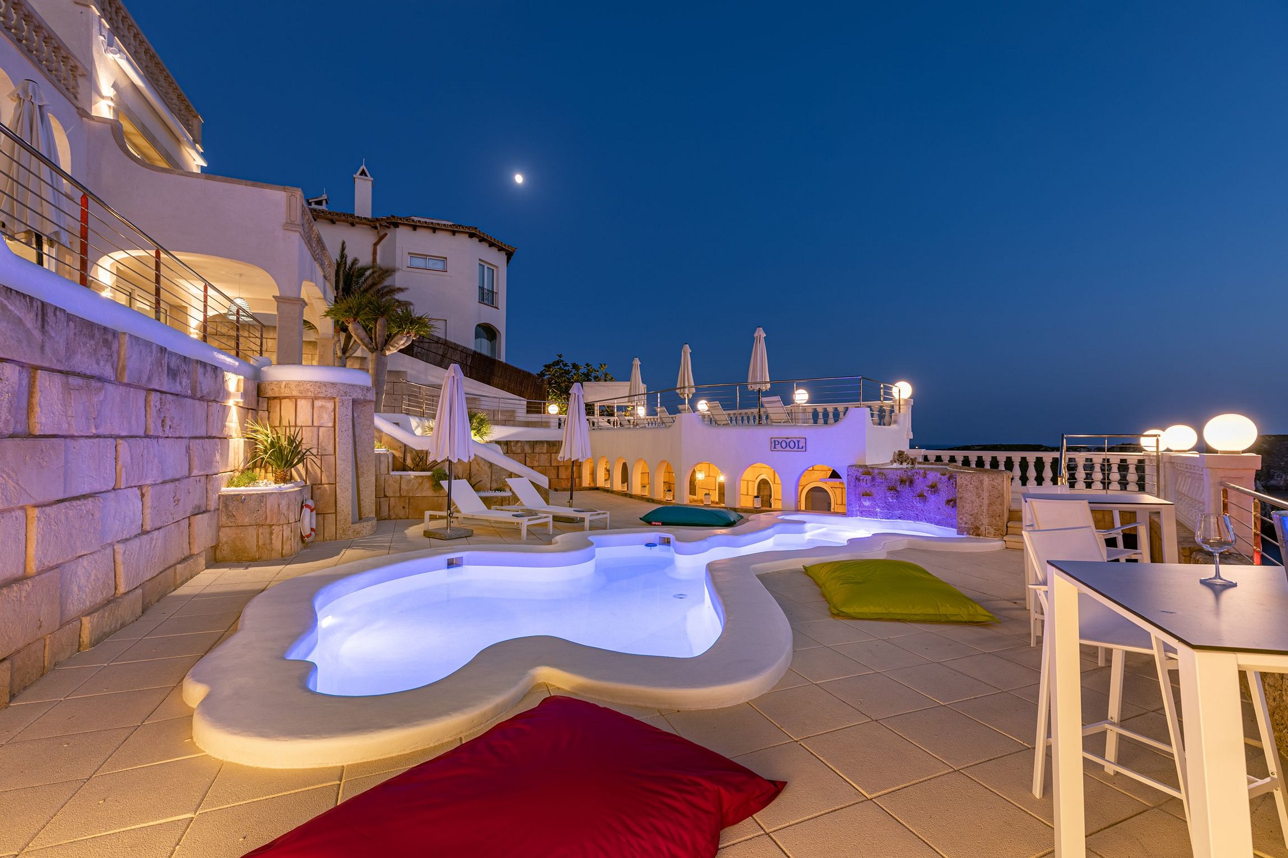 Villa has some special outdoor highlights to offer such as a private sandy beach with sea access and a secluded grotto with beach bar which are the perfect places to enjoy unforgettable sunsets.