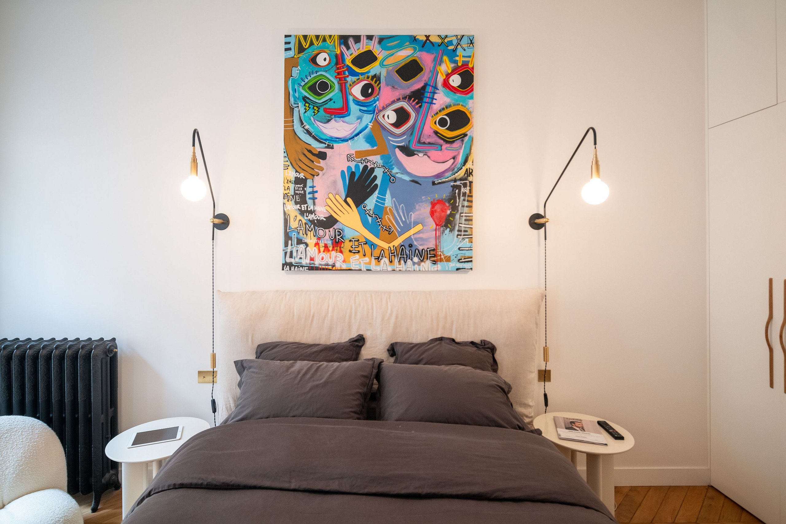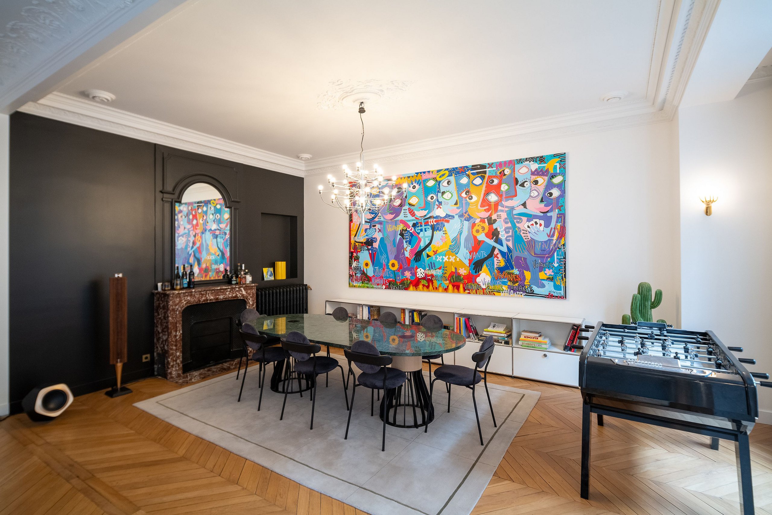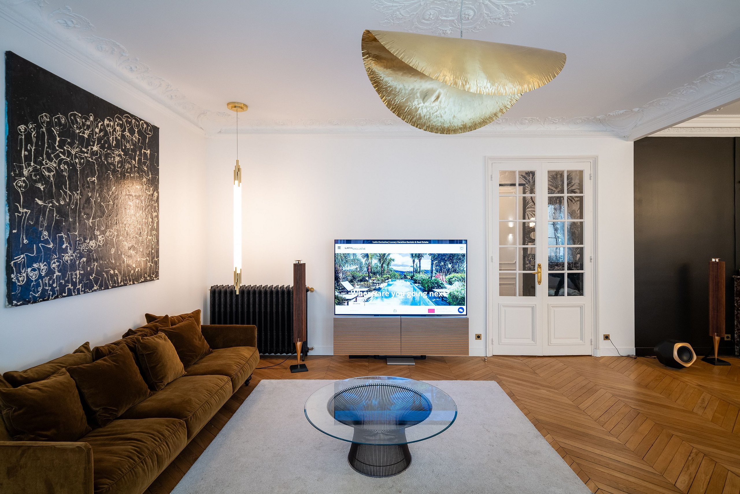 Recently renovated, the apartment unveils a vast living room, enhanced by refined decoration dotted with contemporary artworks. It also boasts a top-of-the-range Bang & Olufsen sound system and TV, complemented by a state-of-the-art fully equipped kitchen.