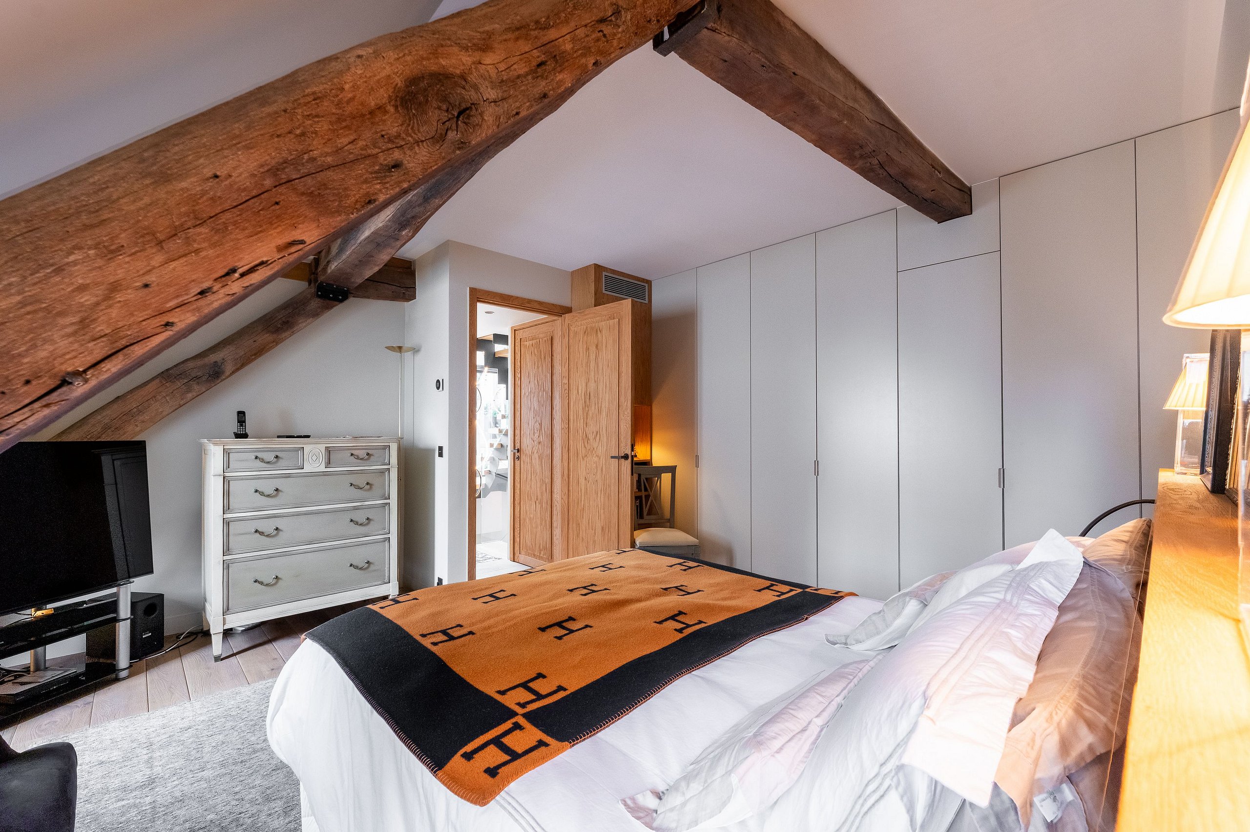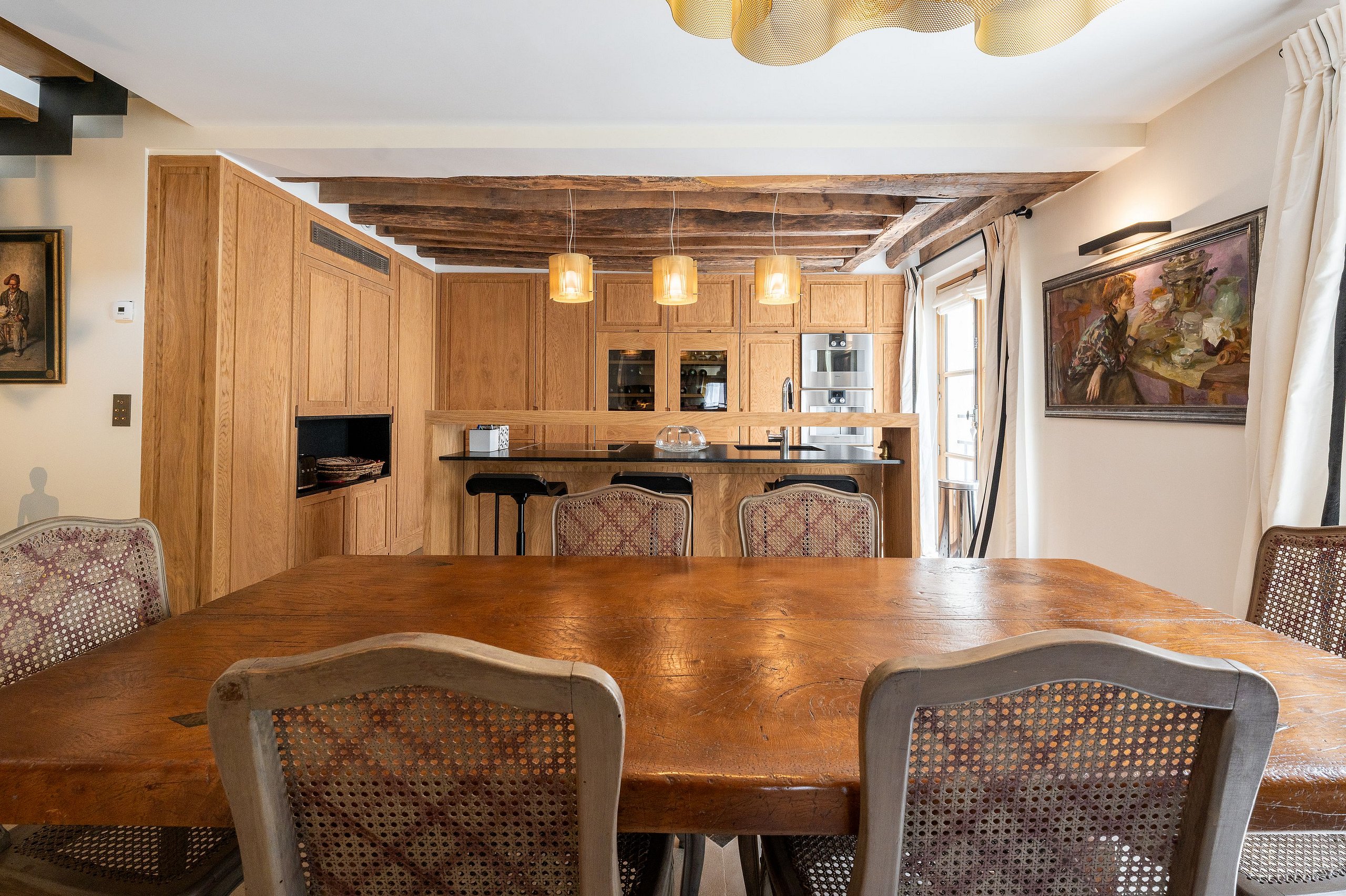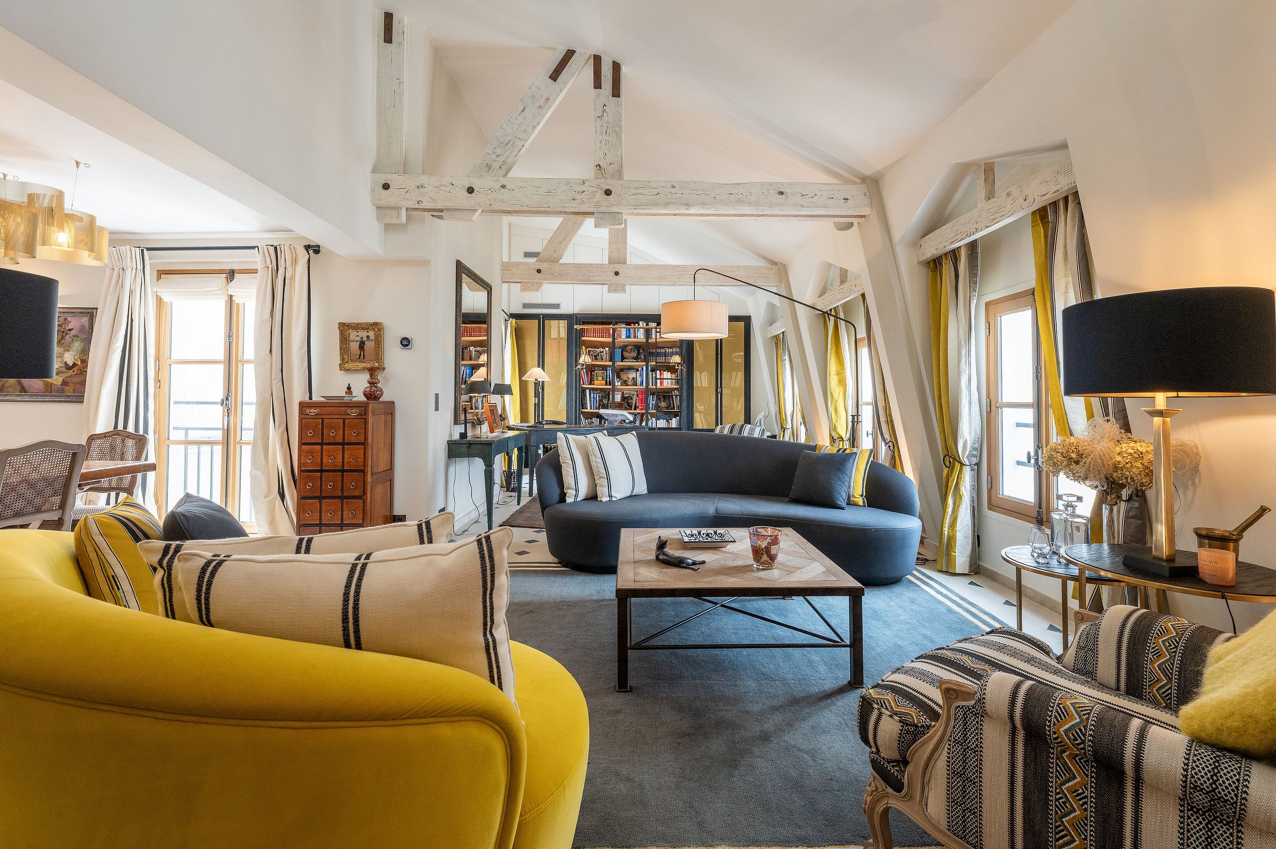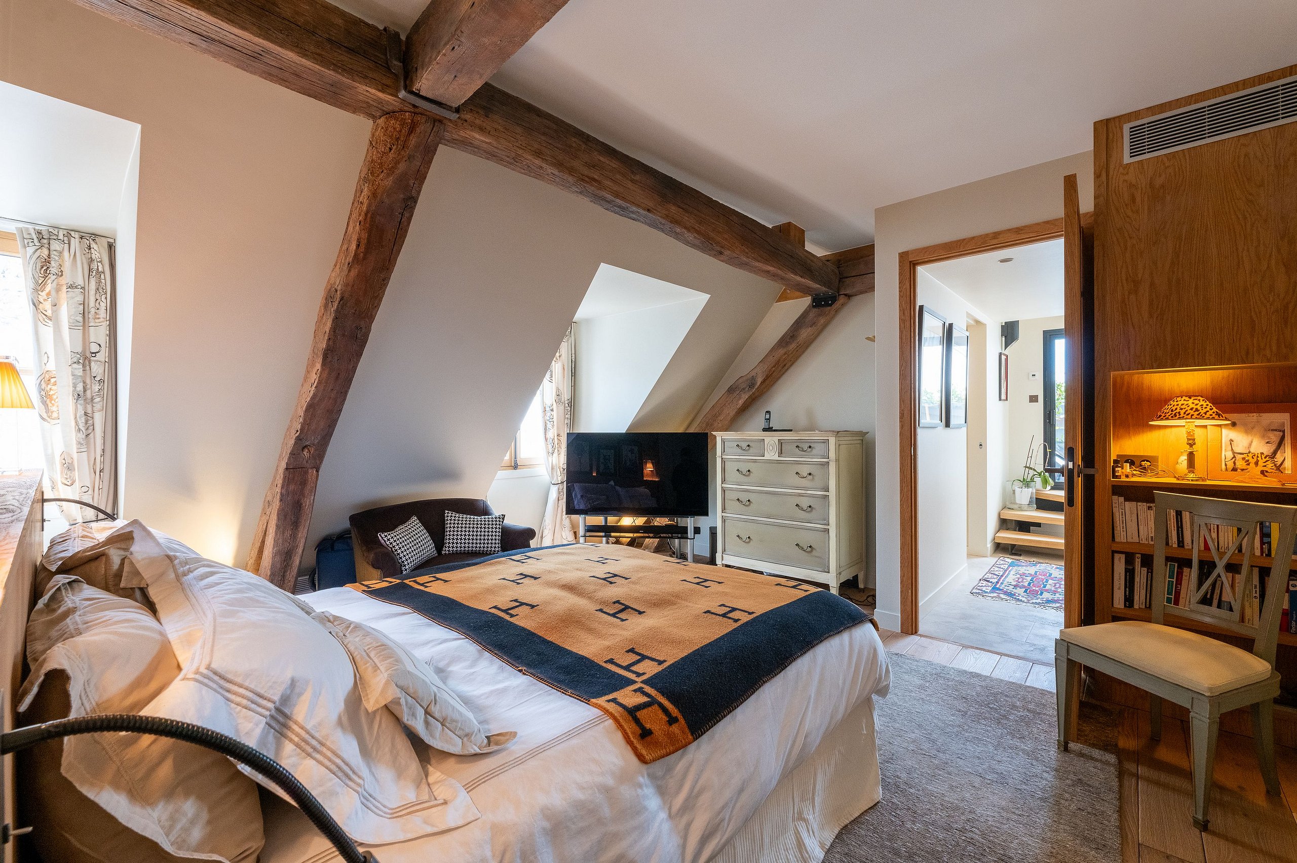 Experience the magic of Paris from the top floor of a historic building in the heart of Saint-Germain-des-Prés — once home to George Sand. This stunning duplex penthouse offers the perfect blend of elegance, comfort, and character for an unforgettable stay in the City of Light.