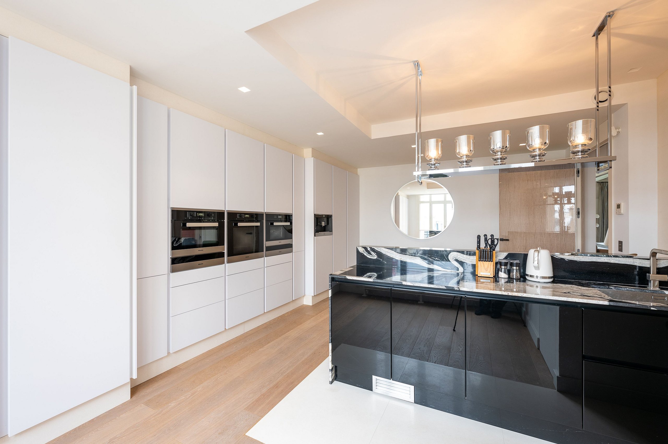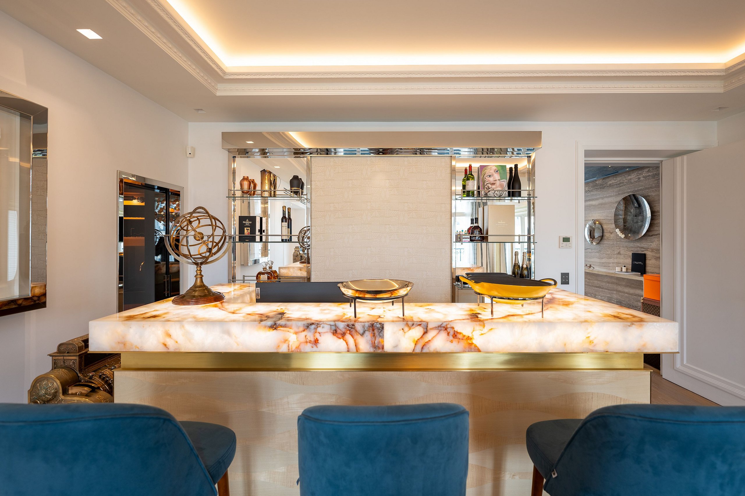 • Elegant Living Spaces: The apartment features a spacious and bright living room and a beautiful dining room, equipped with a bar and a wine cellar, ideal for entertaining.