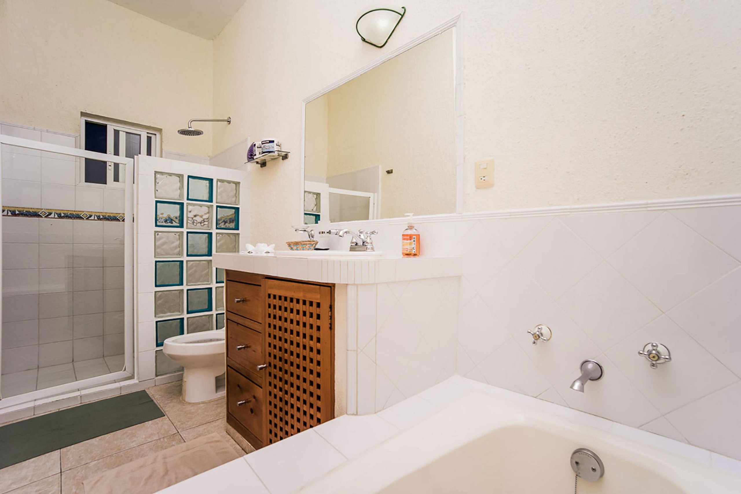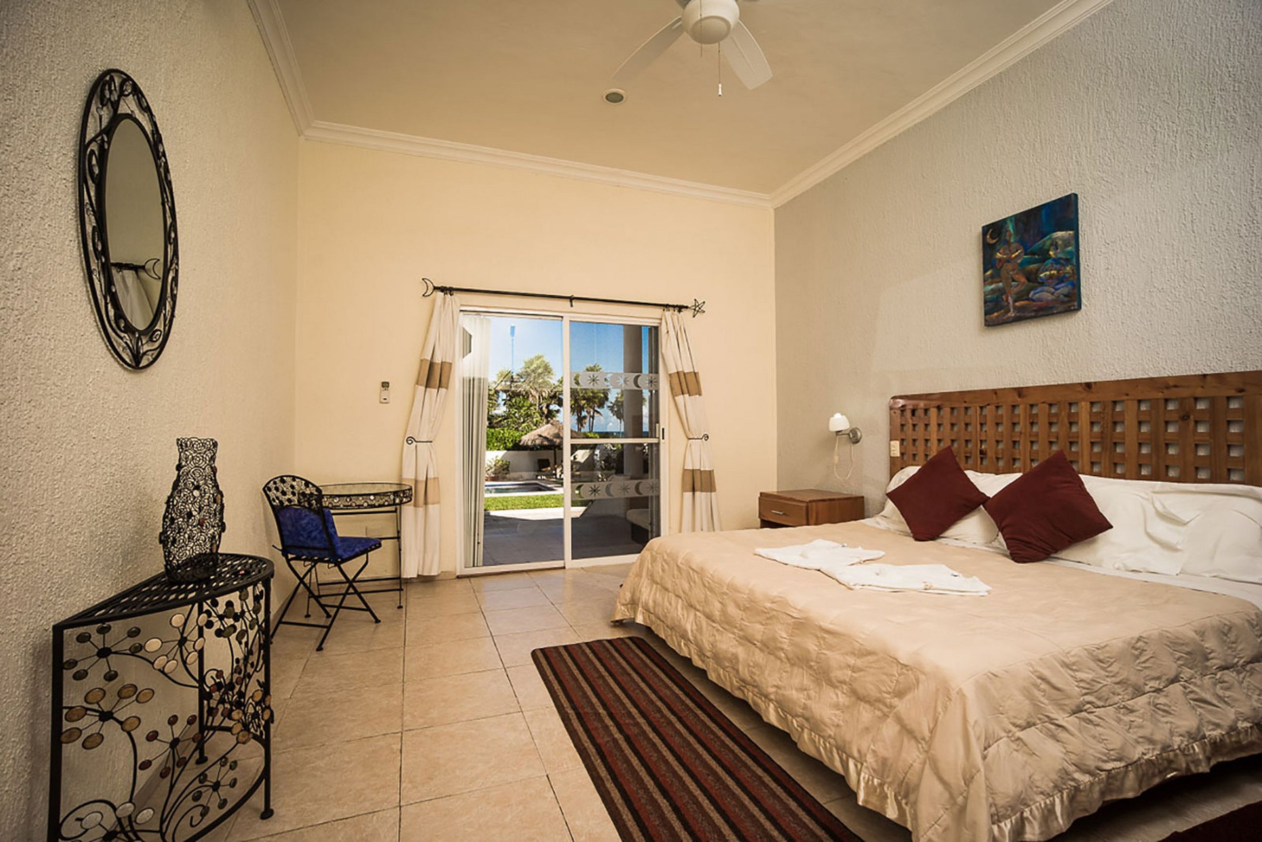 For larger groups, there is a separate side apartment with three bedrooms, a full bathroom, a living-dining room, and a kitchenette. The villa can comfortably accommodate a range of 20 to 26 guests, with additional amenities including a swimming pool, Jacuzzi, hammocks, a beach palapa, and a poolside kitchen-bar for delightful family barbecues.