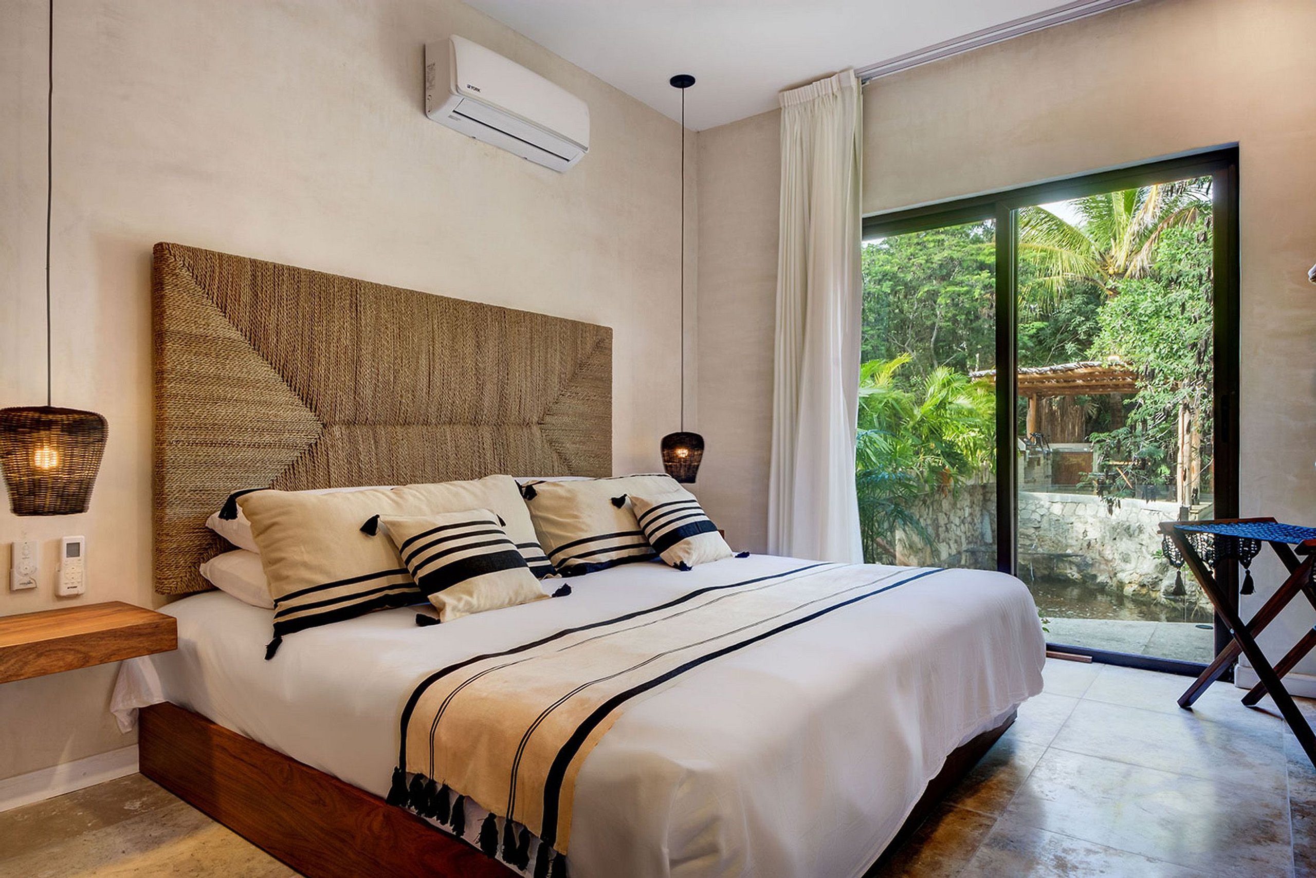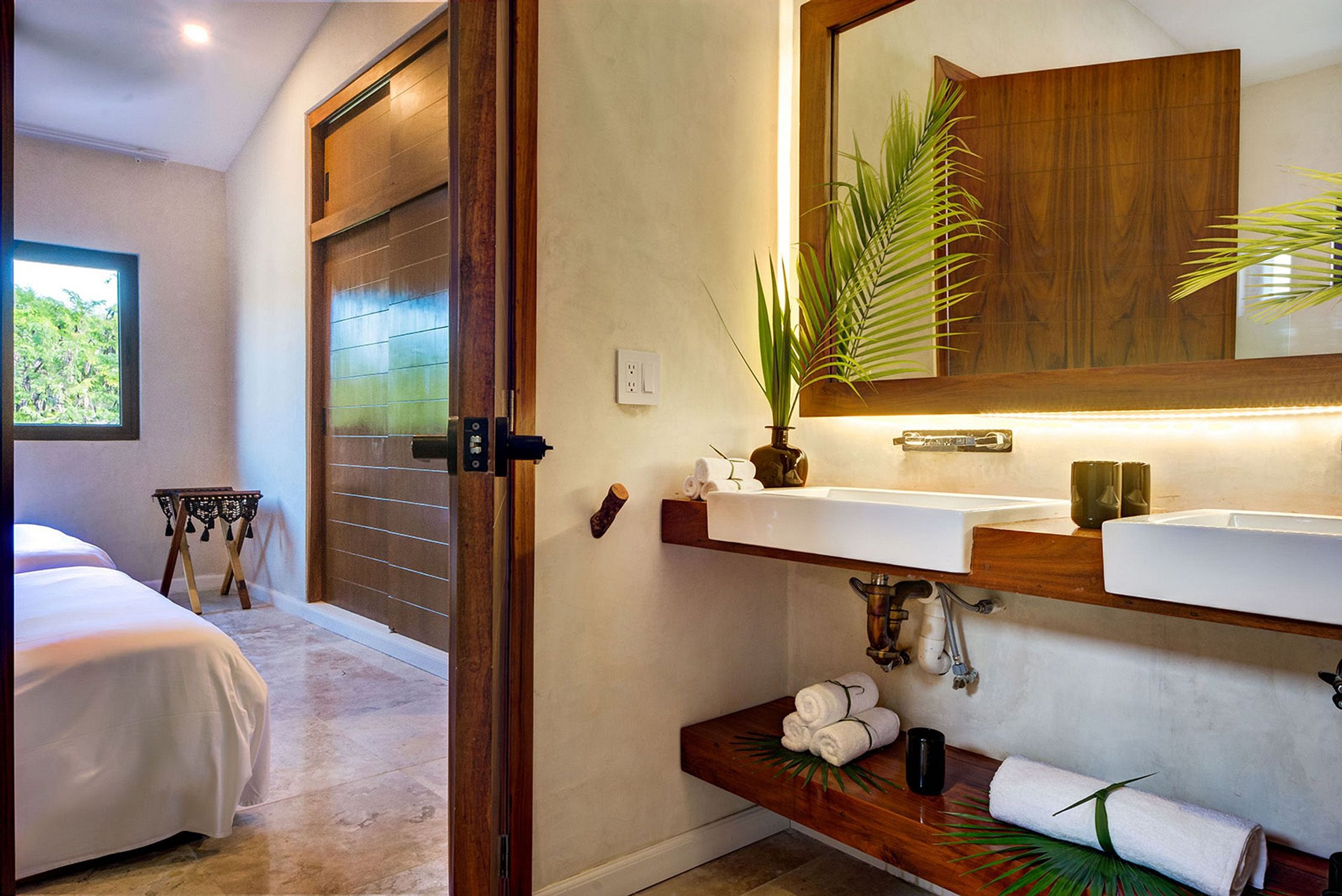 The house prides itself on the exterior common areas of this property which feature a breezy rooftop terrace with a bar overlooking the marina and jungle, and palapa space for more lounging or more collective group activities such as yoga and meditation or spa services. On the ground level by the pool you will also be able to enjoy basking in the sun by day or evening BBQ’s with get togethers around a firepit.