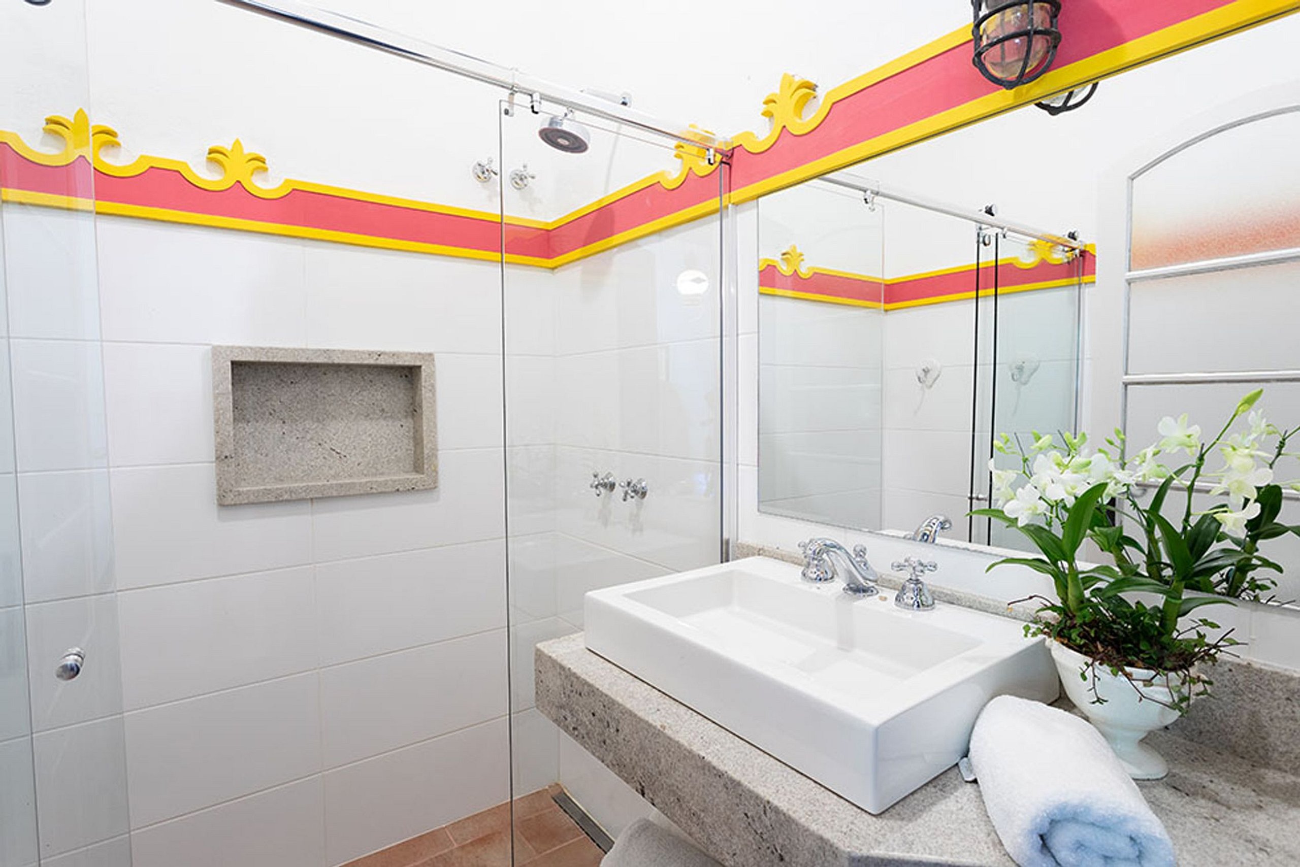 The colonial-style main house was completely renovated in 2020, with a project by renowned architect Marcos Tomanik. It has seven suites, three of them overlooking the sea, all with closets and large bathrooms, occupying an area of 1,500 m².