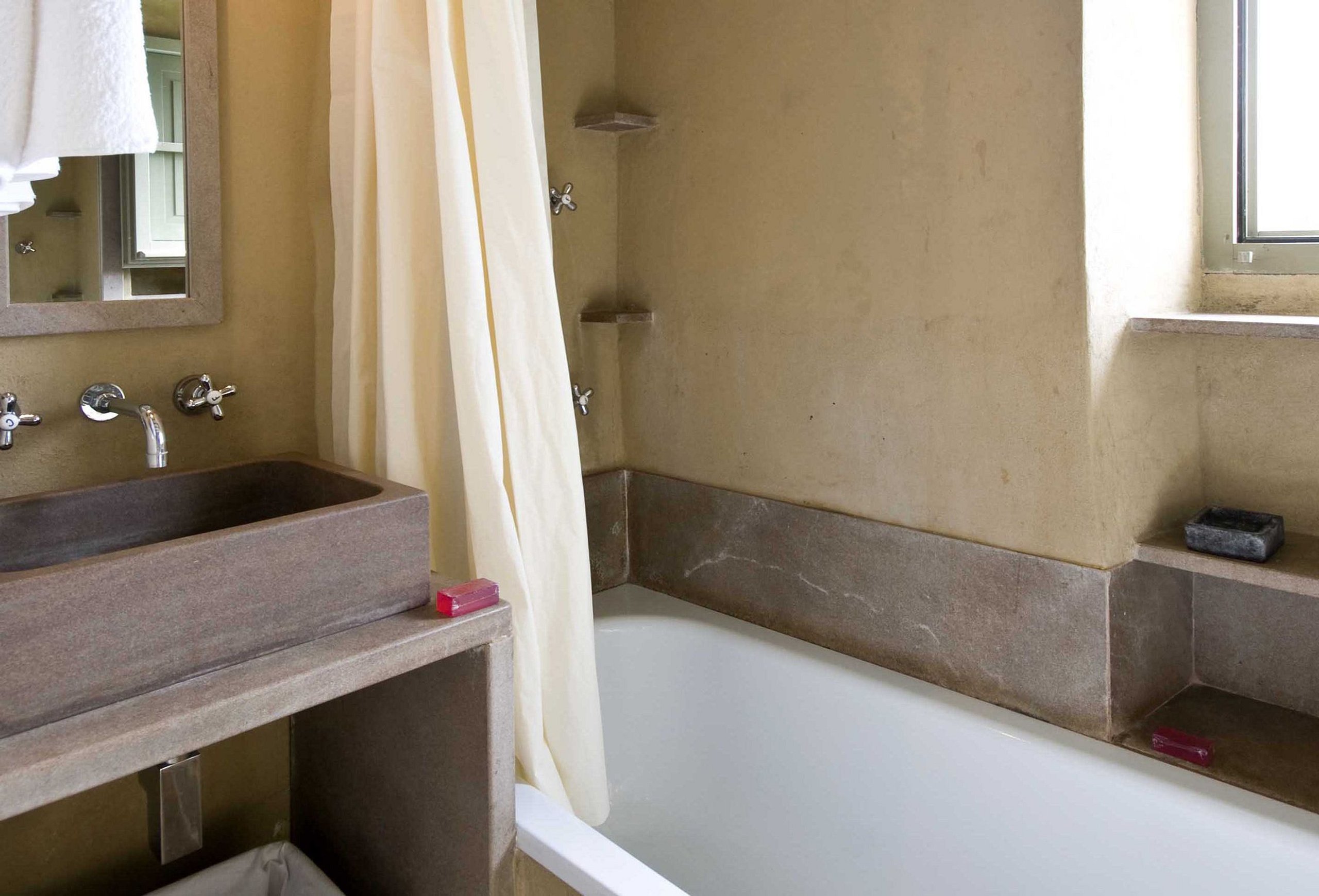 Large stone fireplace
