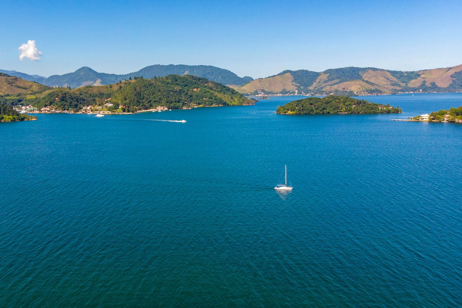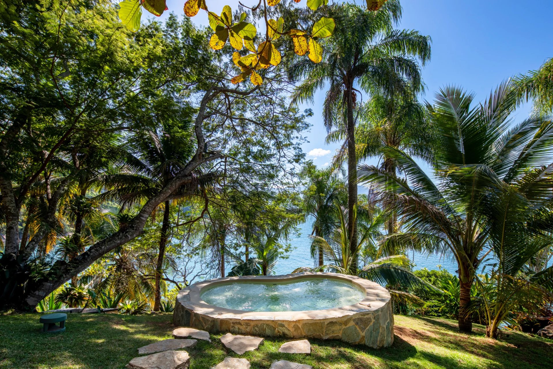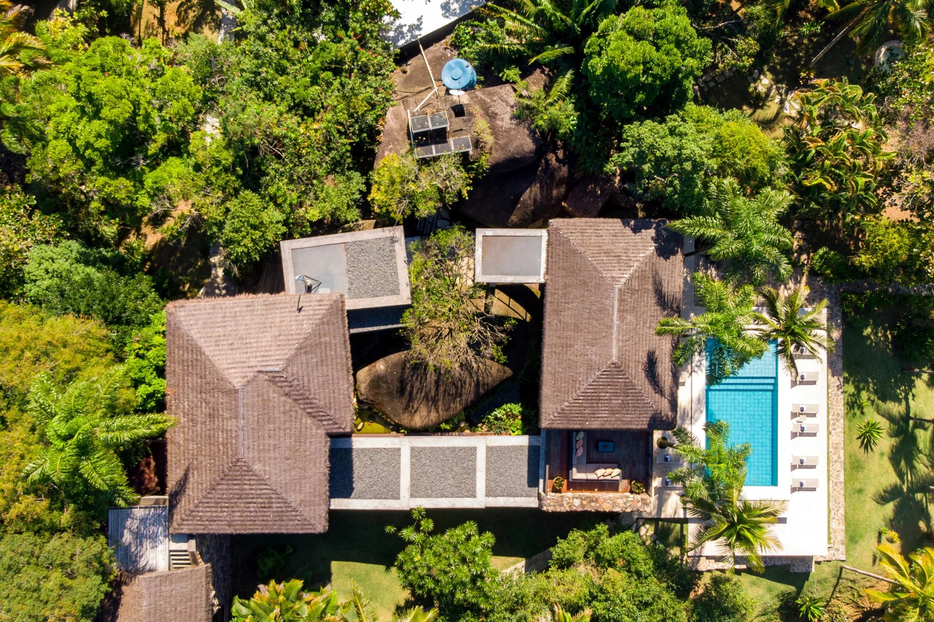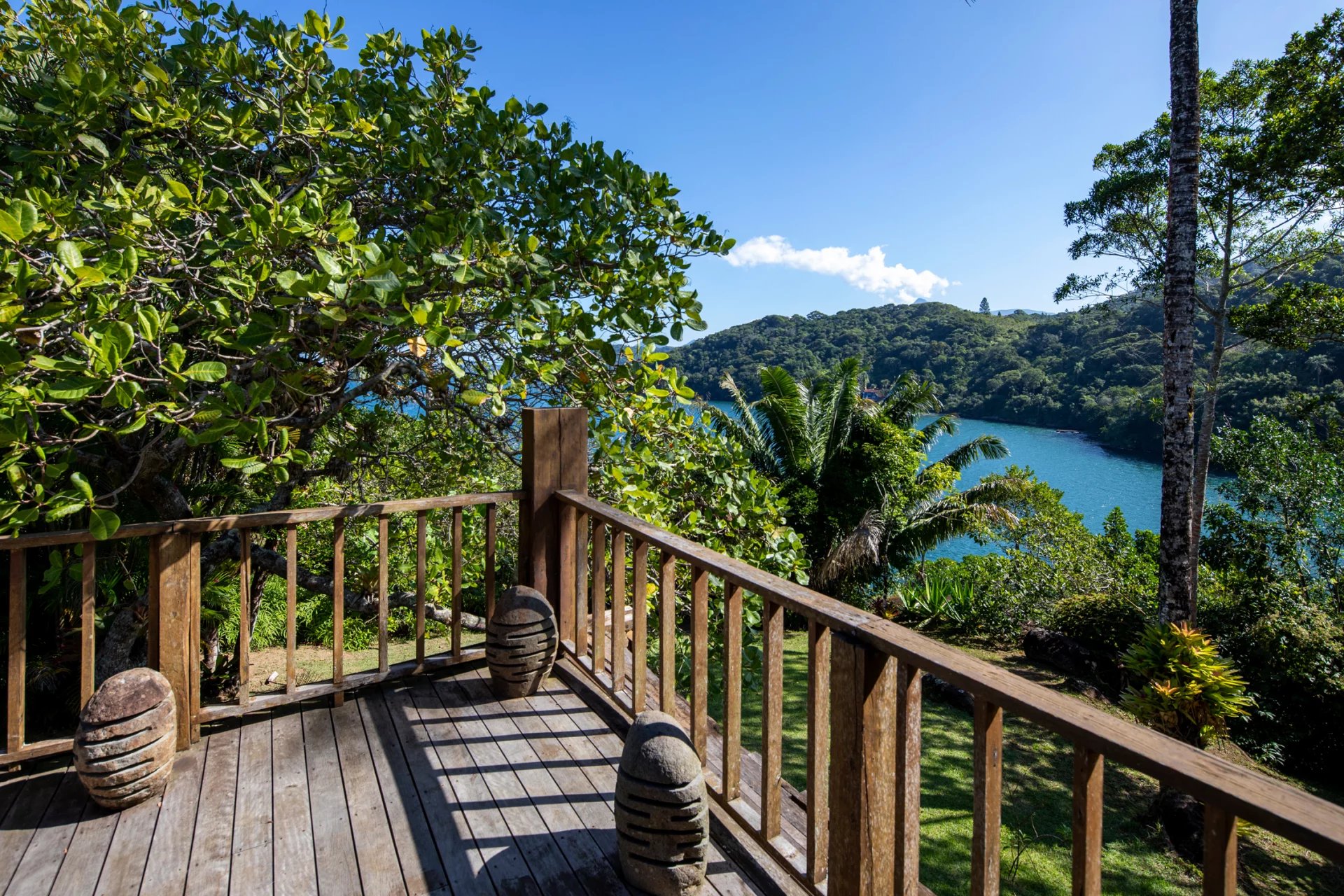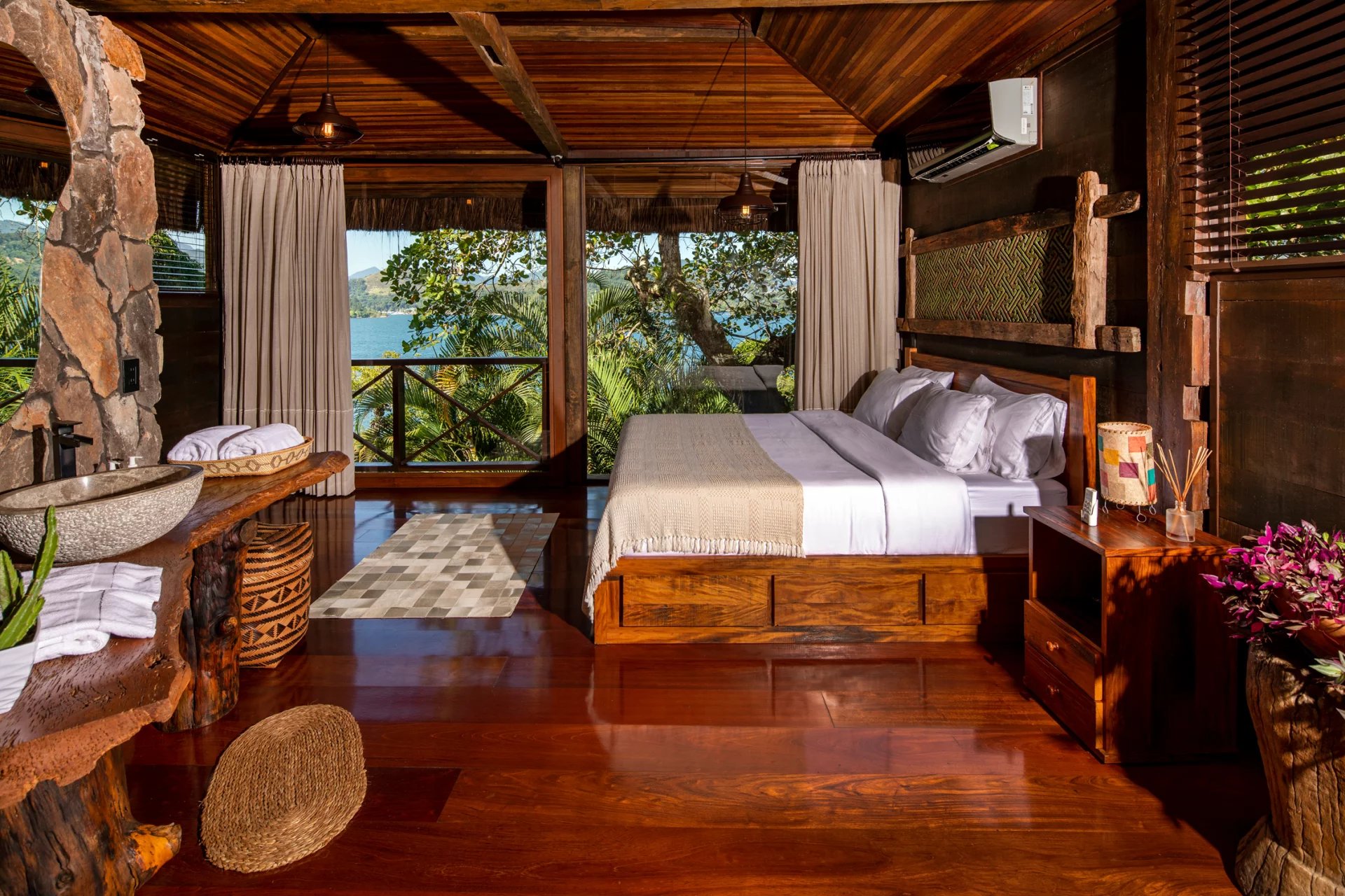 This is a private and exclusive island located 7 km off the coast of Angra dos Reis, a municipality 168 km from the city of Rio de Janeiro located on the Costa Verde, a region surrounded by the Atlantic Forest, with a calm and crystal clear sea. A residential property, covering 25,000 sqm and offering luxurious accommodation for up to 10 guests, a huge common area and private beach. The island has common areas created to offer unique experiences. Among them is a beautiful outdoor terrace with a dining room and barbecue; a pool area surrounded by a deck and extended by a comfortable lounge connected to the Main House by a glassed-in corridor that follows an ornamental lake sculpted, among characteristics, by indigenous stones. An area with a gazebo, ideal for lunch and relaxation, a solarium, a luxurious outdoor Jacuzzi overlooking the sea and a private beach. By boat, it is less than 7 minutes from Frade or the villa of Angra dos Reis or less than 1h20 from the city of Rio de Janeiro or Paraty. 5 bedrooms (Main House: 1 master suite and 1 king suite, 2 bungalows and 1 boathouse suite) Wi-fi throughout the property. Entertainment room with HD projector with films, cable TV and sorround sound. Internal / External Sonos audio system throughout the property. Fully equipped state-of-the-art kitchen. Stylish interior design Dining room / barbecue on an external terrace (table for 15). Pool Deck Pool lounge Jacuzzi for 8 People Solarium Private Beach Speedboat (Including transfer for arrival/departure) Heliport that can support 2 helicopters