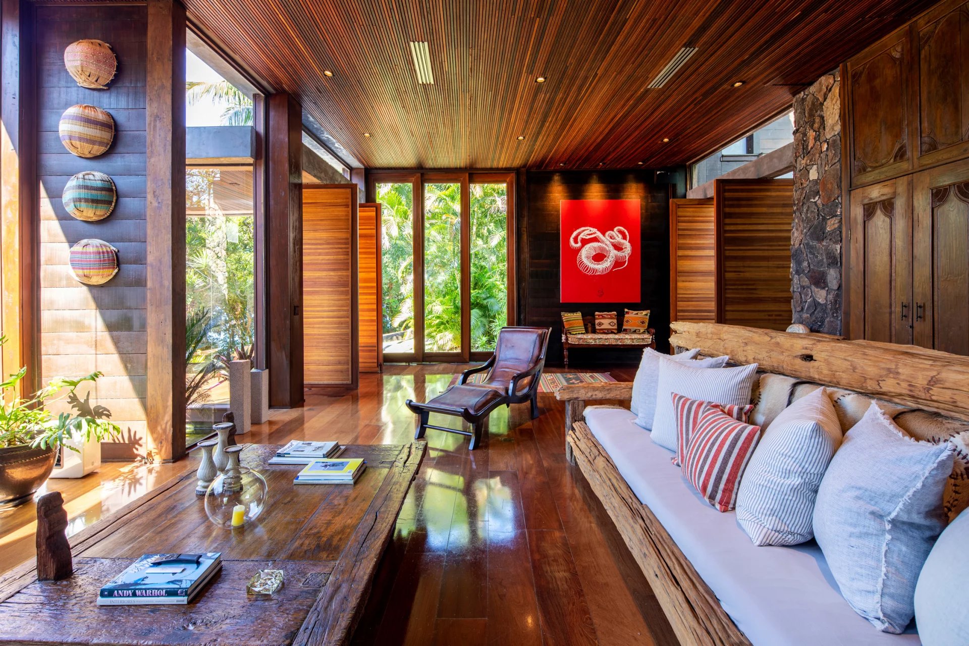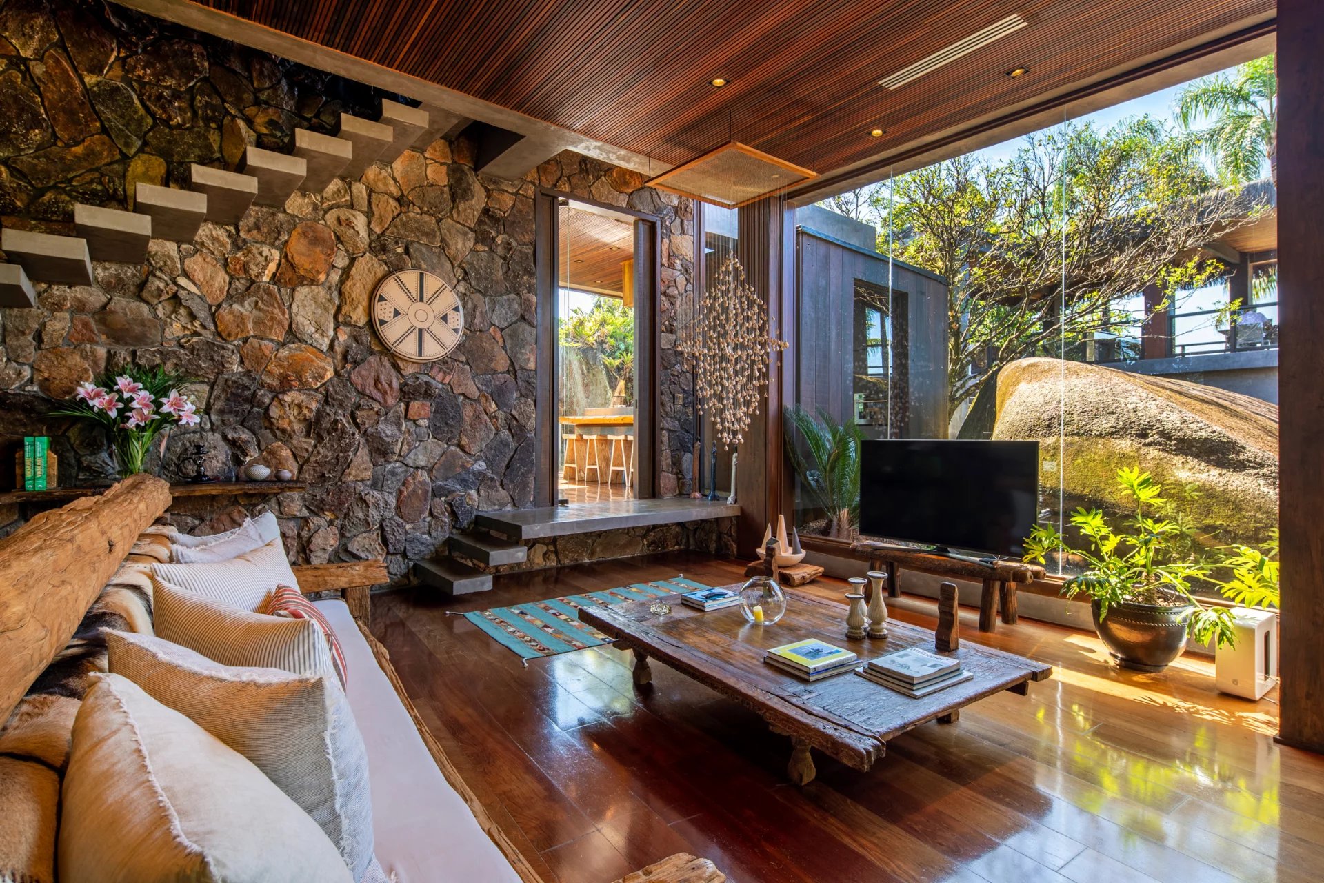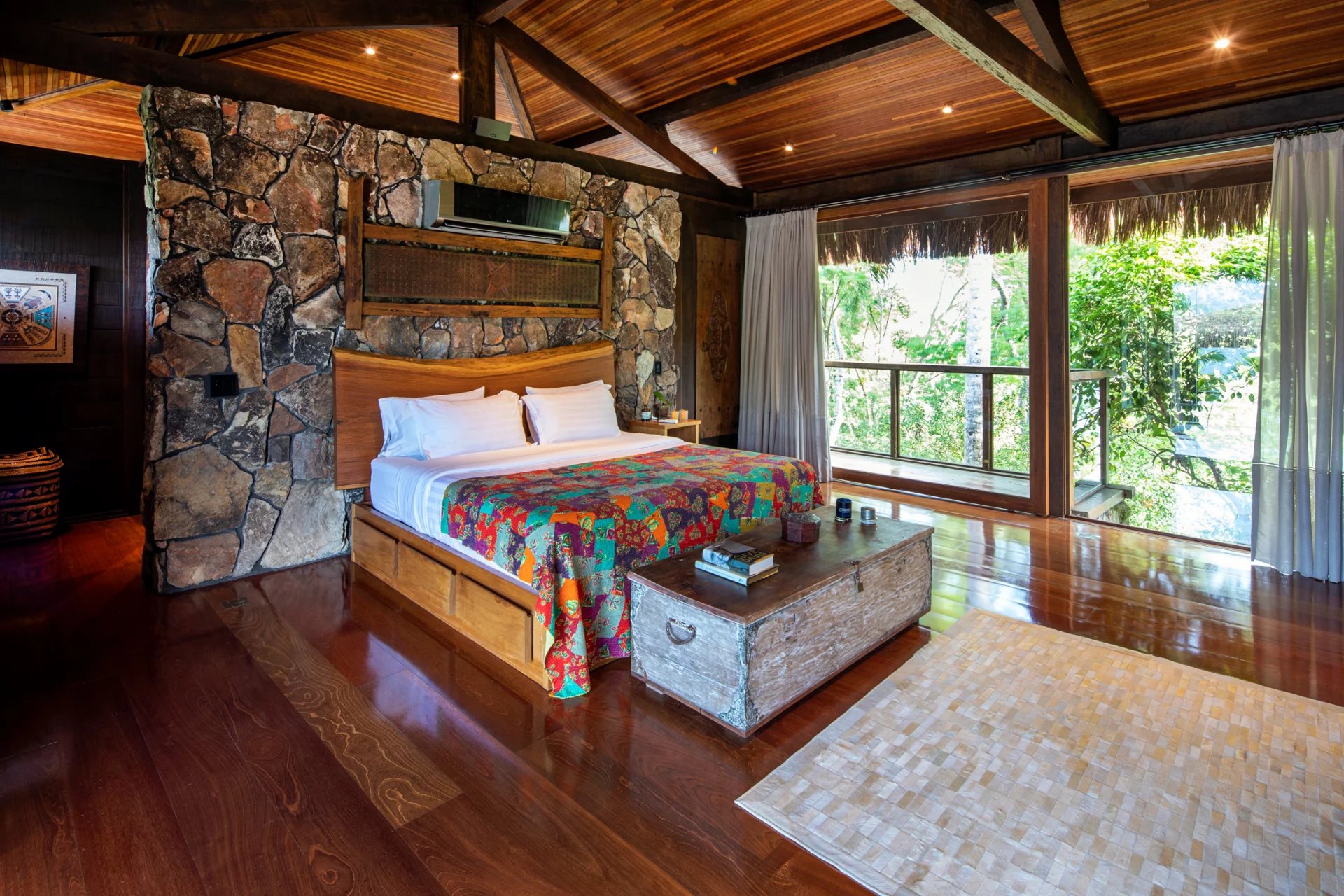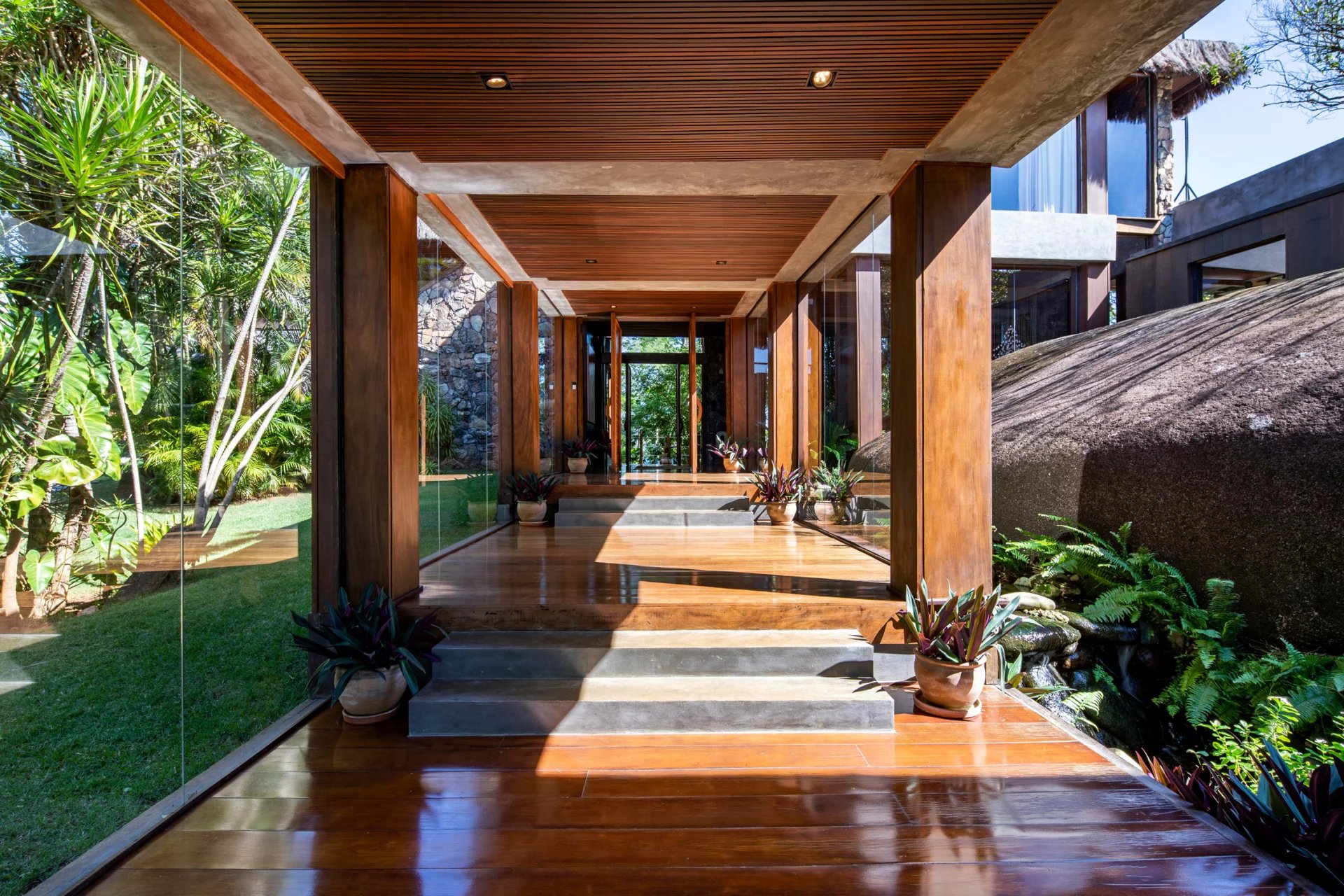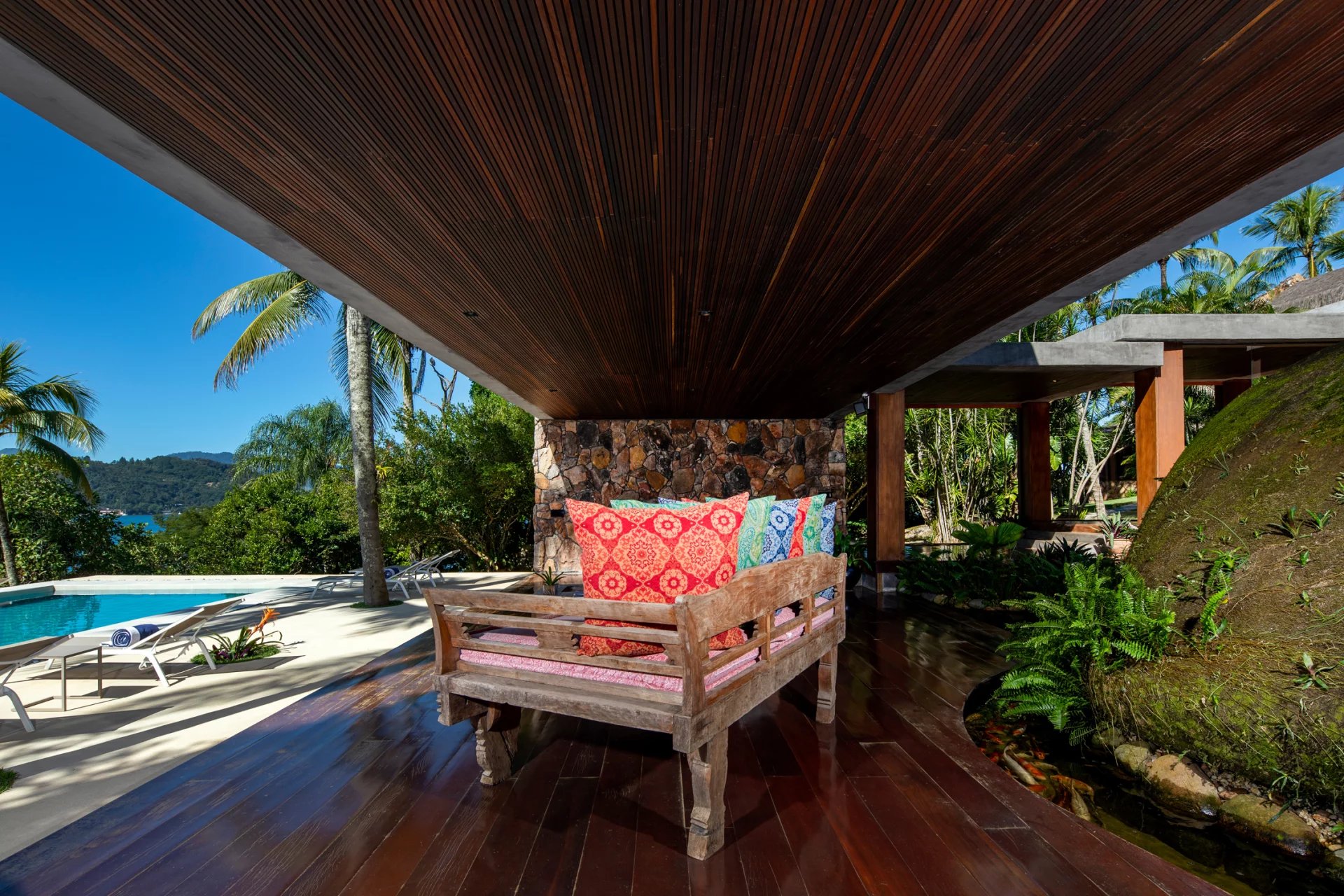 This is a private and exclusive island located 7 km off the coast of Angra dos Reis, a municipality 168 km from the city of Rio de Janeiro located on the Costa Verde, a region surrounded by the Atlantic Forest, with a calm and crystal clear sea. A residential property, covering 25,000 sqm and offering luxurious accommodation for up to 10 guests, a huge common area and private beach. The island has common areas created to offer unique experiences. Among them is a beautiful outdoor terrace with a dining room and barbecue; a pool area surrounded by a deck and extended by a comfortable lounge connected to the Main House by a glassed-in corridor that follows an ornamental lake sculpted, among characteristics, by indigenous stones. An area with a gazebo, ideal for lunch and relaxation, a solarium, a luxurious outdoor Jacuzzi overlooking the sea and a private beach. By boat, it is less than 7 minutes from Frade or the villa of Angra dos Reis or less than 1h20 from the city of Rio de Janeiro or Paraty. 5 bedrooms (Main House: 1 master suite and 1 king suite, 2 bungalows and 1 boathouse suite) Wi-fi throughout the property. Entertainment room with HD projector with films, cable TV and sorround sound. Internal / External Sonos audio system throughout the property. Fully equipped state-of-the-art kitchen. Stylish interior design Dining room / barbecue on an external terrace (table for 15). Pool Deck Pool lounge Jacuzzi for 8 People Solarium Private Beach Speedboat (Including transfer for arrival/departure) Heliport that can support 2 helicopters
