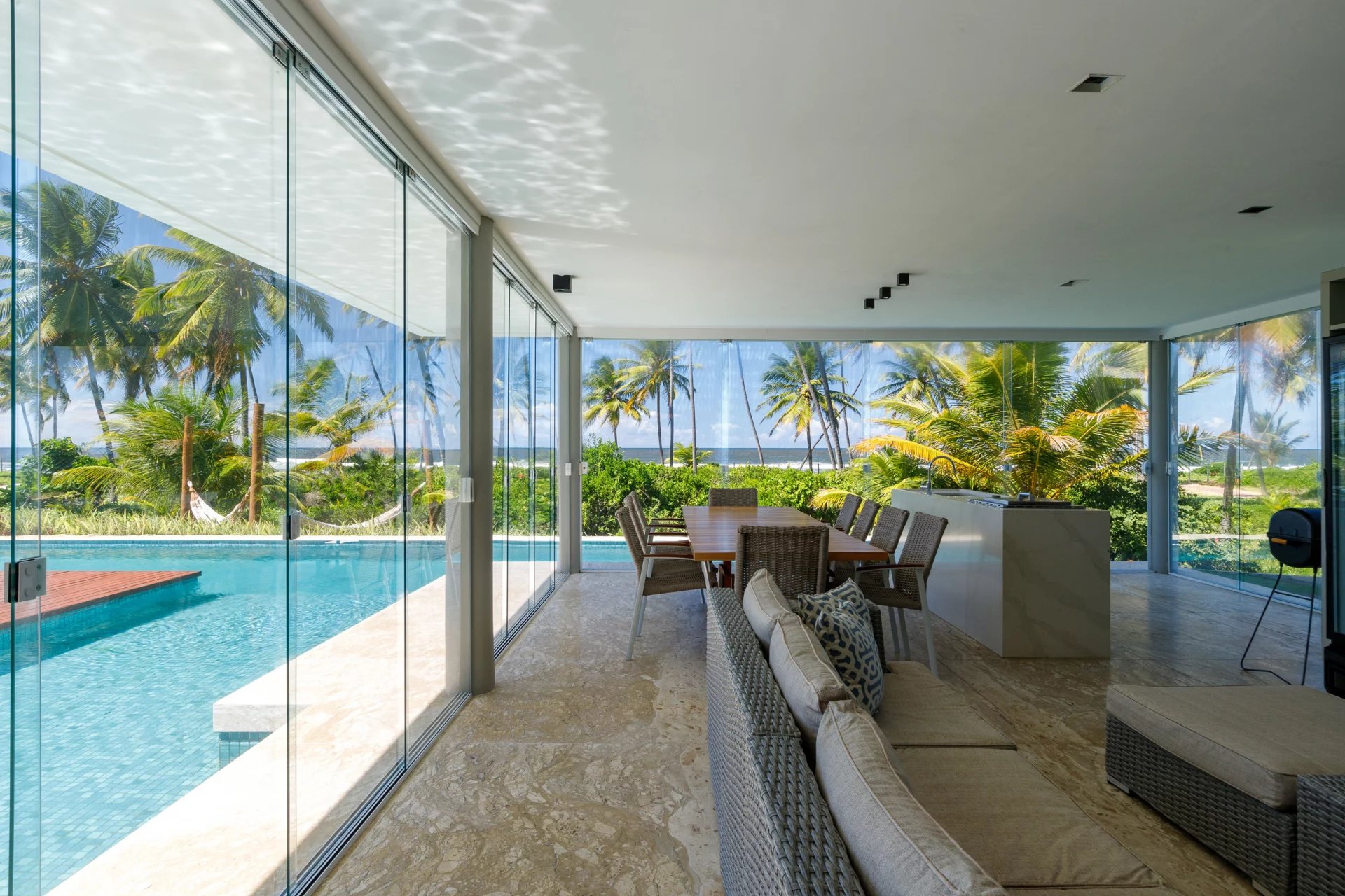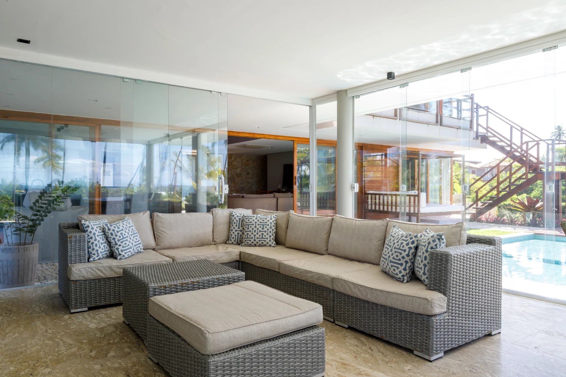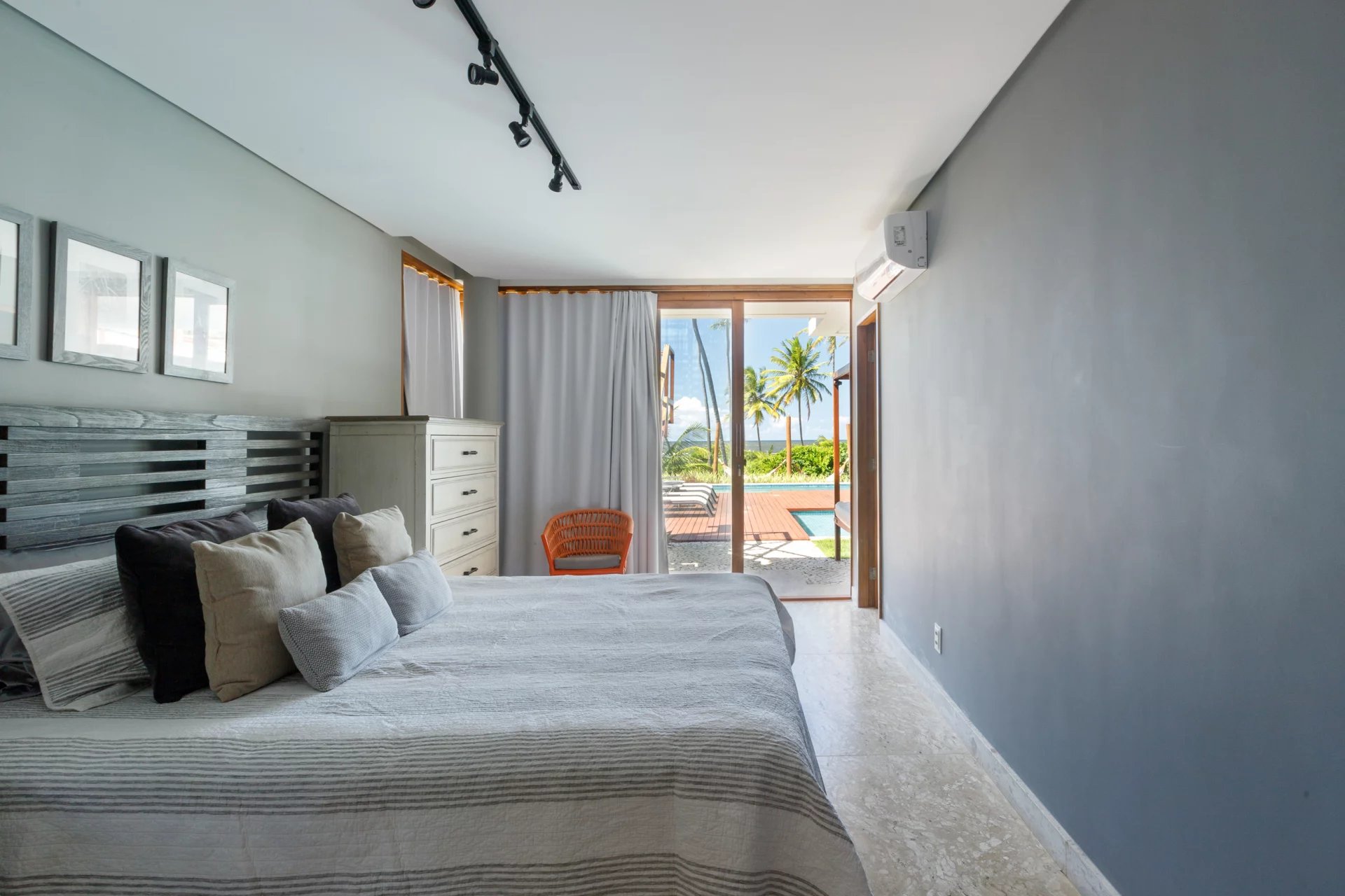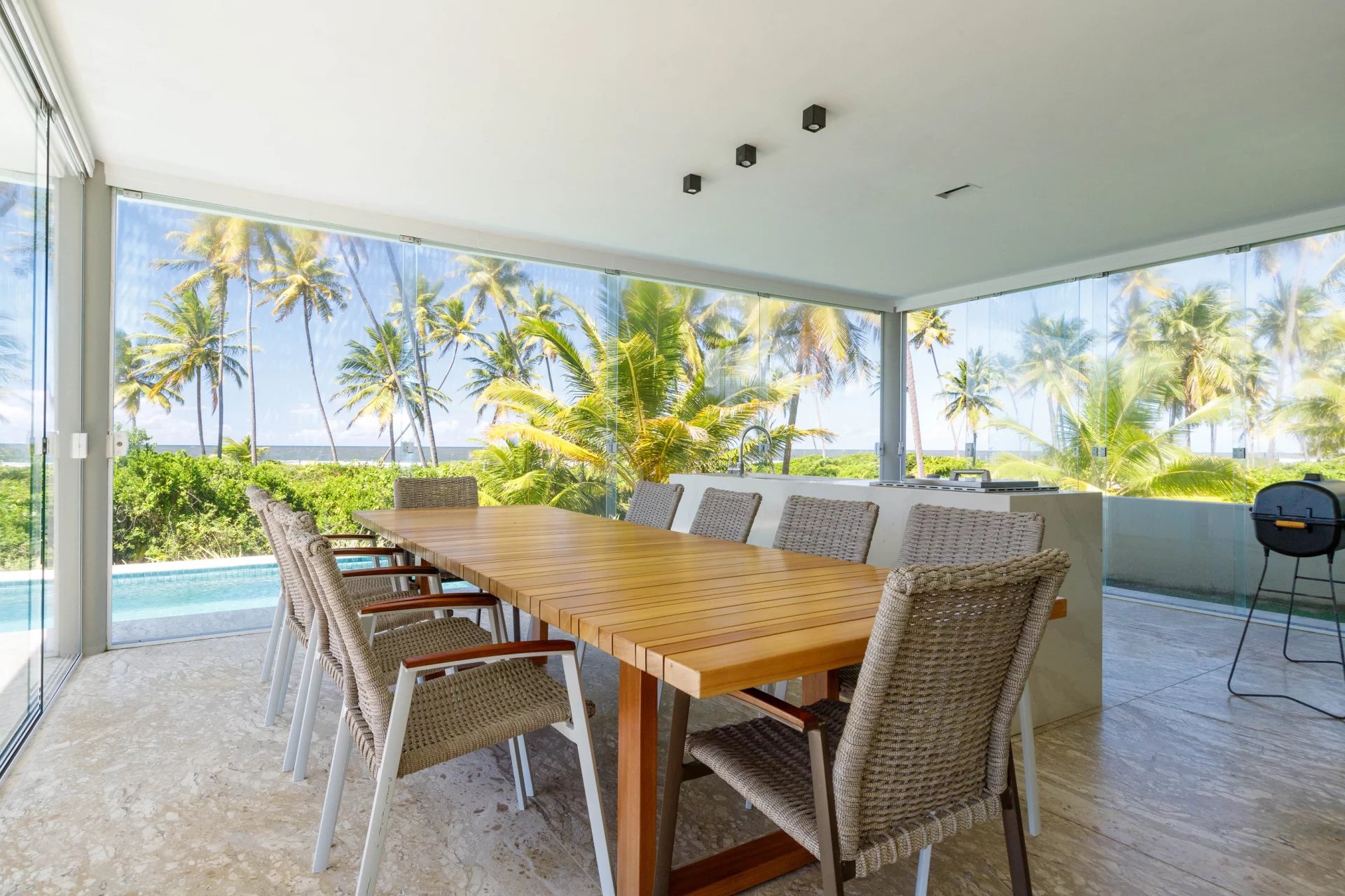 This fantastic 2-story villa is the ideal destination for those seeking peace and tranquility. It is in a gated community and is surrounded by beautiful landscapes, natural pools and the entire length of the sea. 800 square meters of total area 650 square meters of built area Open concept to maximize sunlight. First floor features 2 living rooms with smart TVs, 2 dining areas and kitchen. Environment with central air conditioning and views of the external area. Living rooms have large sofas to enjoy movies and series on the smart TV. Large swimming pool and dining table for 10 people in the living area. Well-planned American kitchen with quality furniture and appliances. First floor suite with king size bed, sofa bed and private bathroom. Master suite with super king size bed, sofa bed and balcony overlooking the sea. Second suite with 2 queen beds and ocean views. Third suite with king size bed and balcony overlooking the sea. Outdoor area includes swimming pool with shallow sides and deep end, ideal for children and swimming. Wooden deck with loungers and garden around the house.
