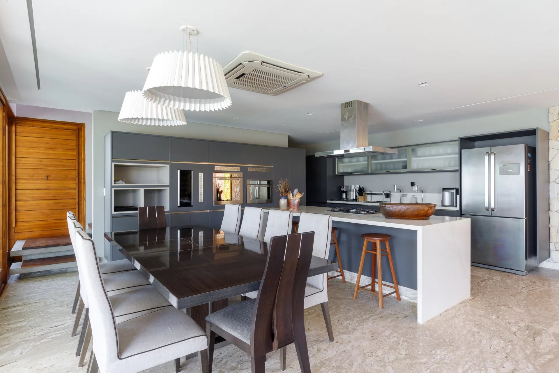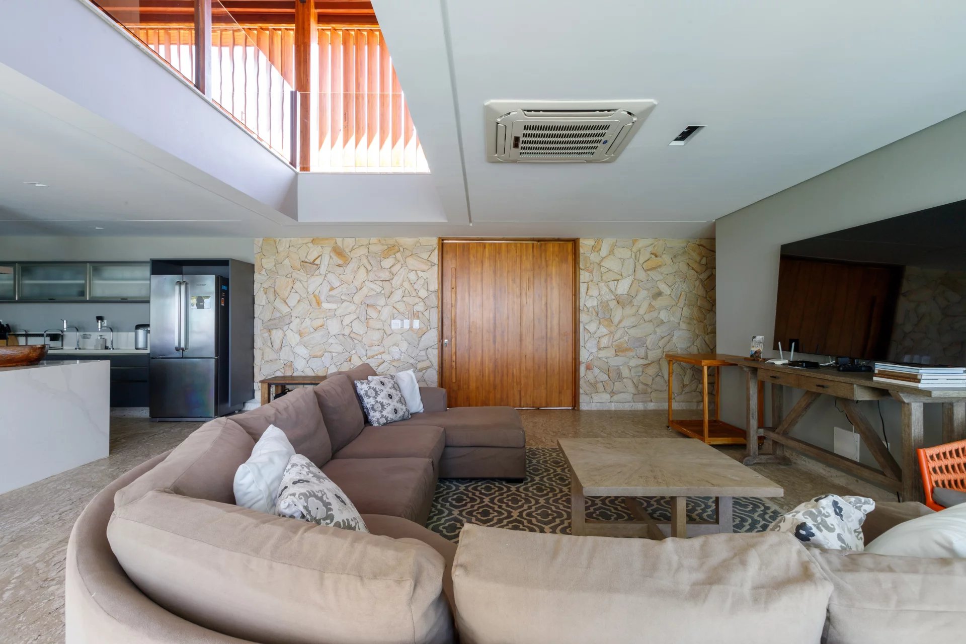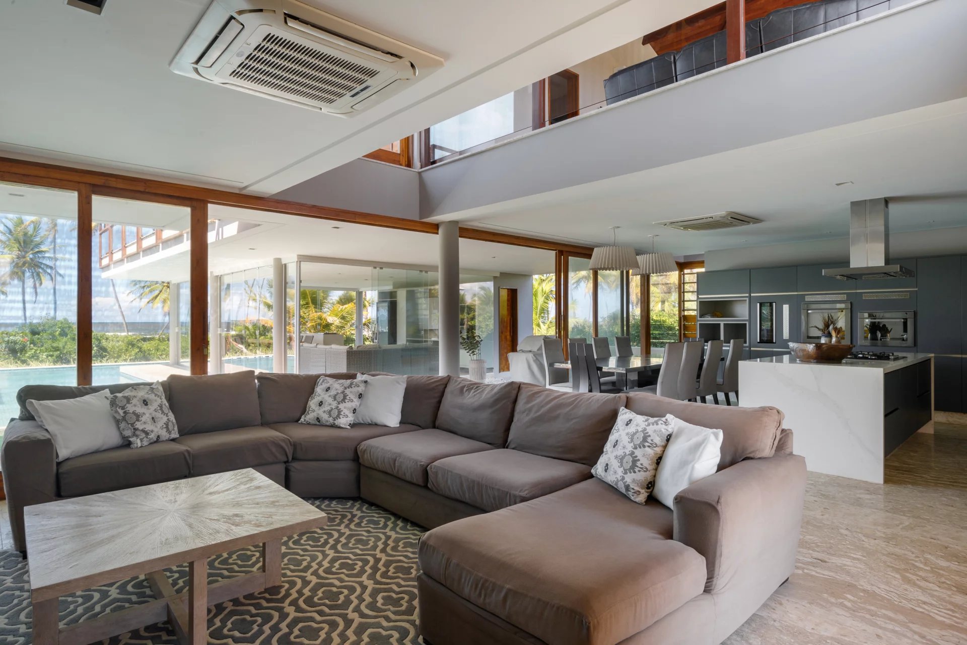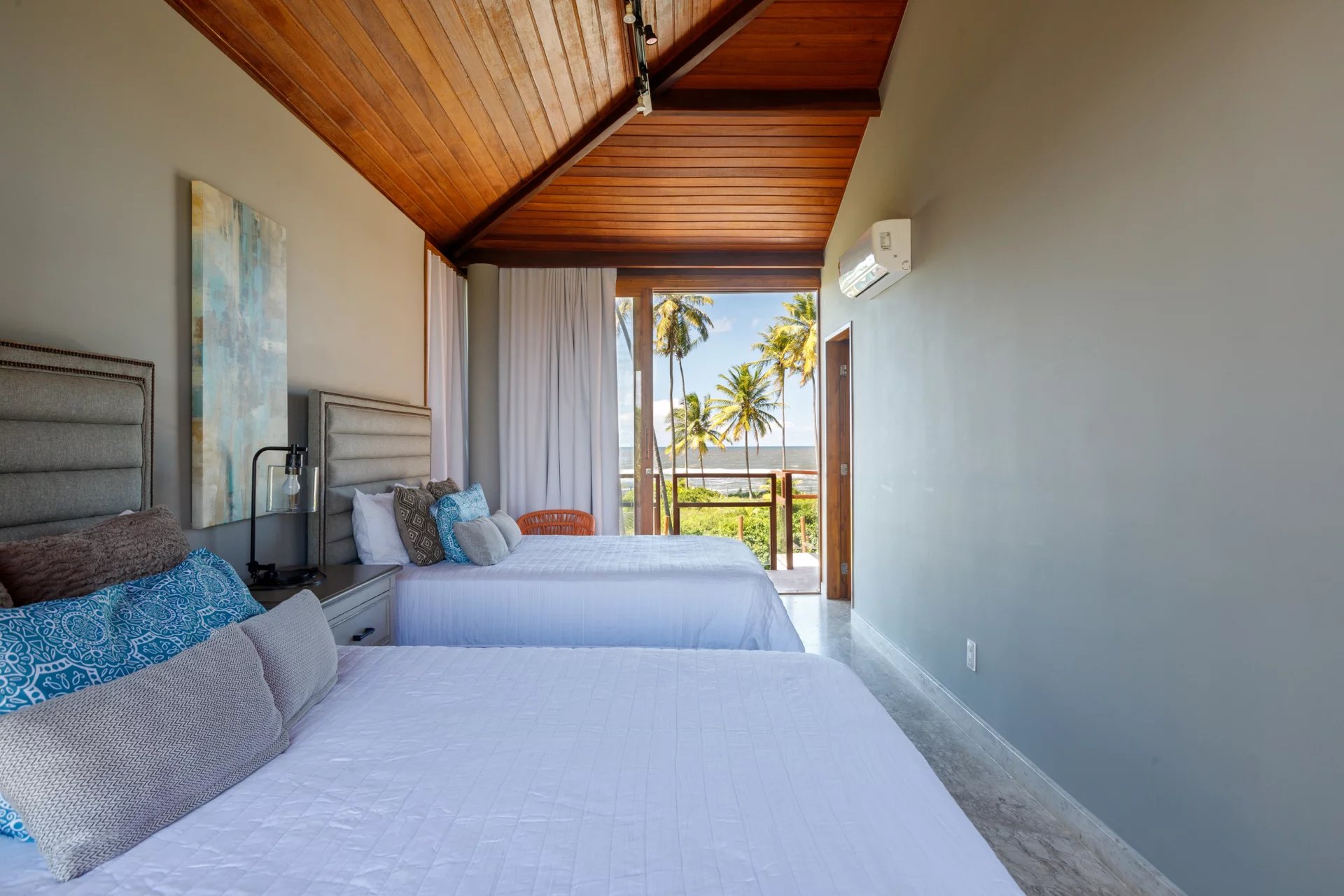 This fantastic 2-story villa is the ideal destination for those seeking peace and tranquility. It is in a gated community and is surrounded by beautiful landscapes, natural pools and the entire length of the sea. 800 square meters of total area 650 square meters of built area Open concept to maximize sunlight. First floor features 2 living rooms with smart TVs, 2 dining areas and kitchen. Environment with central air conditioning and views of the external area. Living rooms have large sofas to enjoy movies and series on the smart TV. Large swimming pool and dining table for 10 people in the living area. Well-planned American kitchen with quality furniture and appliances. First floor suite with king size bed, sofa bed and private bathroom. Master suite with super king size bed, sofa bed and balcony overlooking the sea. Second suite with 2 queen beds and ocean views. Third suite with king size bed and balcony overlooking the sea. Outdoor area includes swimming pool with shallow sides and deep end, ideal for children and swimming. Wooden deck with loungers and garden around the house.