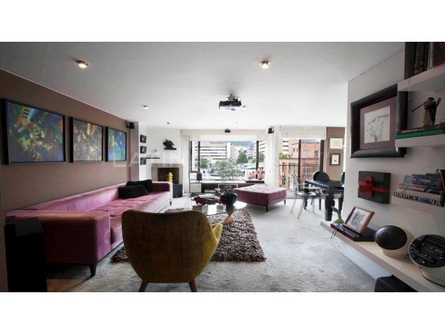 Great semi-remodeled apartment located in the exclusive sector - El Chicó- in Bogotá. It consists of a dining room with a fireplace, closed kitchen, social bathroom, service bathroom, laundry area, two bedrooms each with its bathroom (the main room with walking closet and space for study) and two garages.