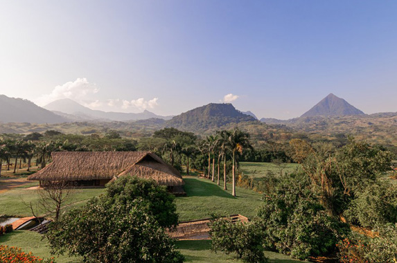 On the lower level, there’s a rustic-style open area surrounded by palms and greenery — ideal for group activities, yoga sessions, or simply admiring the panoramic view. The entire property is immersed in nature, offering a sense of peace and spaciousness throughout.