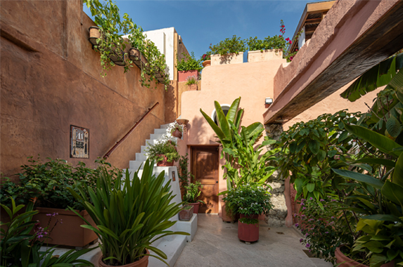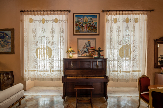 There’s a cozy sitting room before reaching the pool, perfect for relaxed conversations. And beyond it, a beautiful, fully air-conditioned main living room, home to a grand piano and a legendary table where Gabriel García Márquez wrote parts of Love in the Time of Cholera. The atmosphere throughout the house is enchanting — colorful cushions, carefully selected books, and artistic details make every corner feel warm, lived-in, and authentic.
