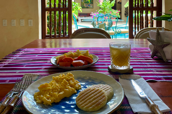 I arrived on a warm Friday afternoon, where I was welcomed with a refreshing glass of cold lulo juice — the perfect welcome after a few hours of travel. The entrance led through a lovely hallway, and as soon as I stepped inside, I could feel the calm atmosphere of the house. Soft lighting, the sound of the water in the courtyard, and beautiful tropical plants all set the tone for a truly special weekend.