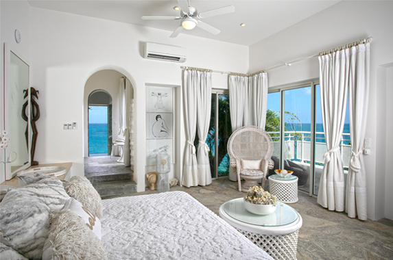 This seven-bedroom villa sits just steps from the sand and features bright interiors, en-suite bathrooms, and open-plan spaces framed by tropical gardens. Outdoors, it offers a heated pool, fire pit, pizza oven, and spacious lounge areas. A separate pool house includes two additional bedrooms for larger groups. Wellness features such as a gym, steam room, and massage area complement the experience. A dedicated staff—including chef, butler, and housekeeping—ensures every detail is taken care of.